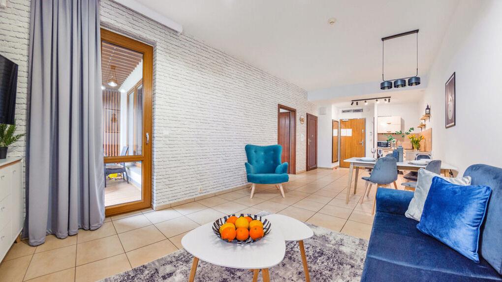 • Haustiere sind in der ausgewählten Wohnung erlaubt. Die Kosten für den Aufenthalt mit einem Haustier betragen 40 PLN pro Tag.