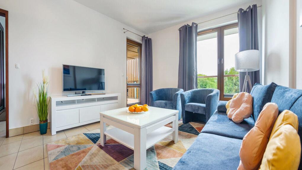 • Haustiere sind in der ausgewählten Wohnung erlaubt. Die Kosten für den Aufenthalt mit einem Haustier betragen 40 PLN pro Tag.