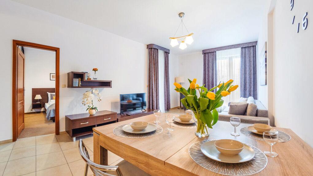 • Haustiere sind in der ausgewählten Wohnung erlaubt. Die Kosten für den Aufenthalt mit einem Haustier betragen 40 PLN pro Tag.