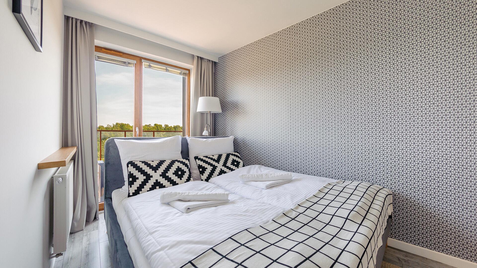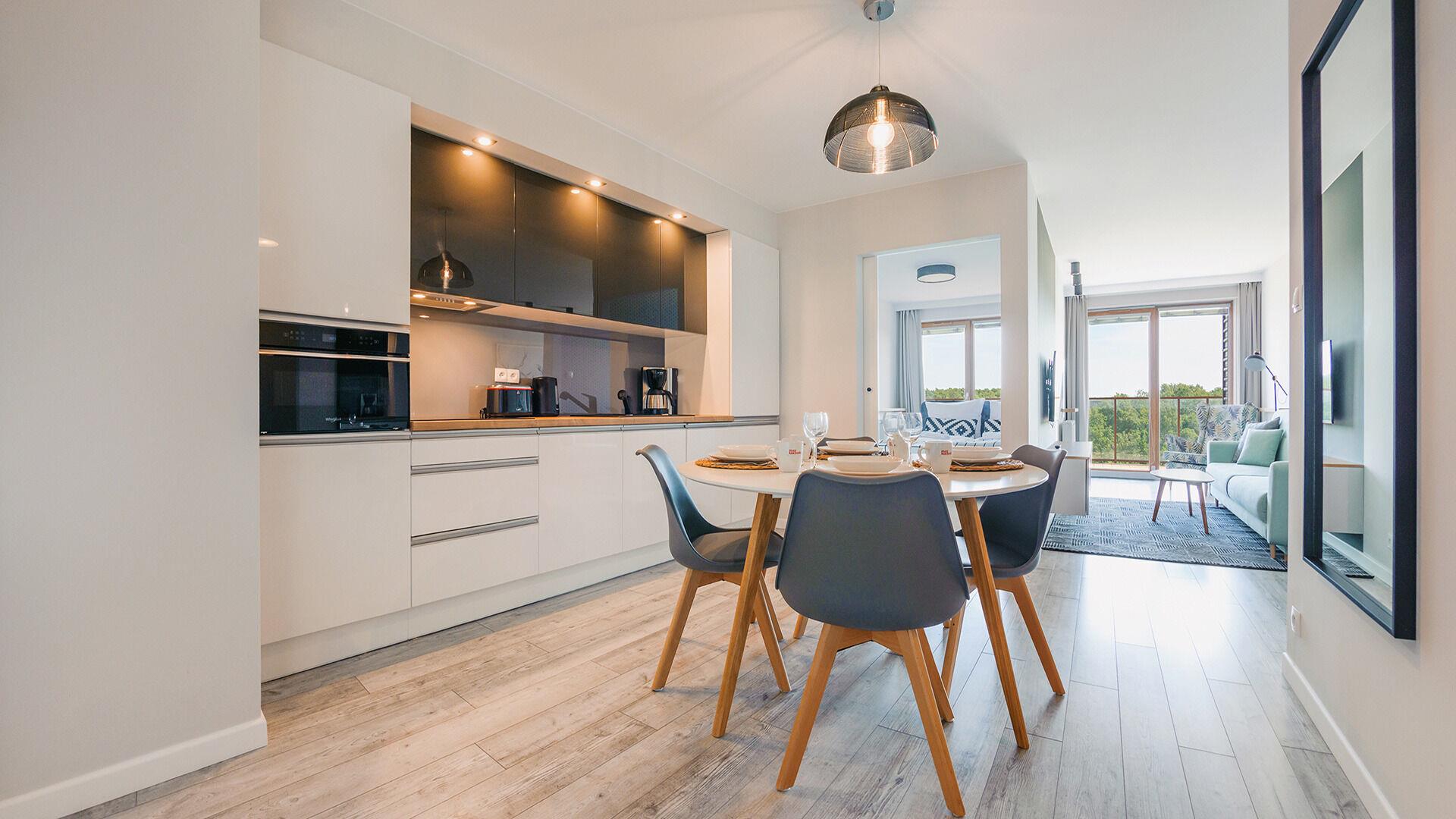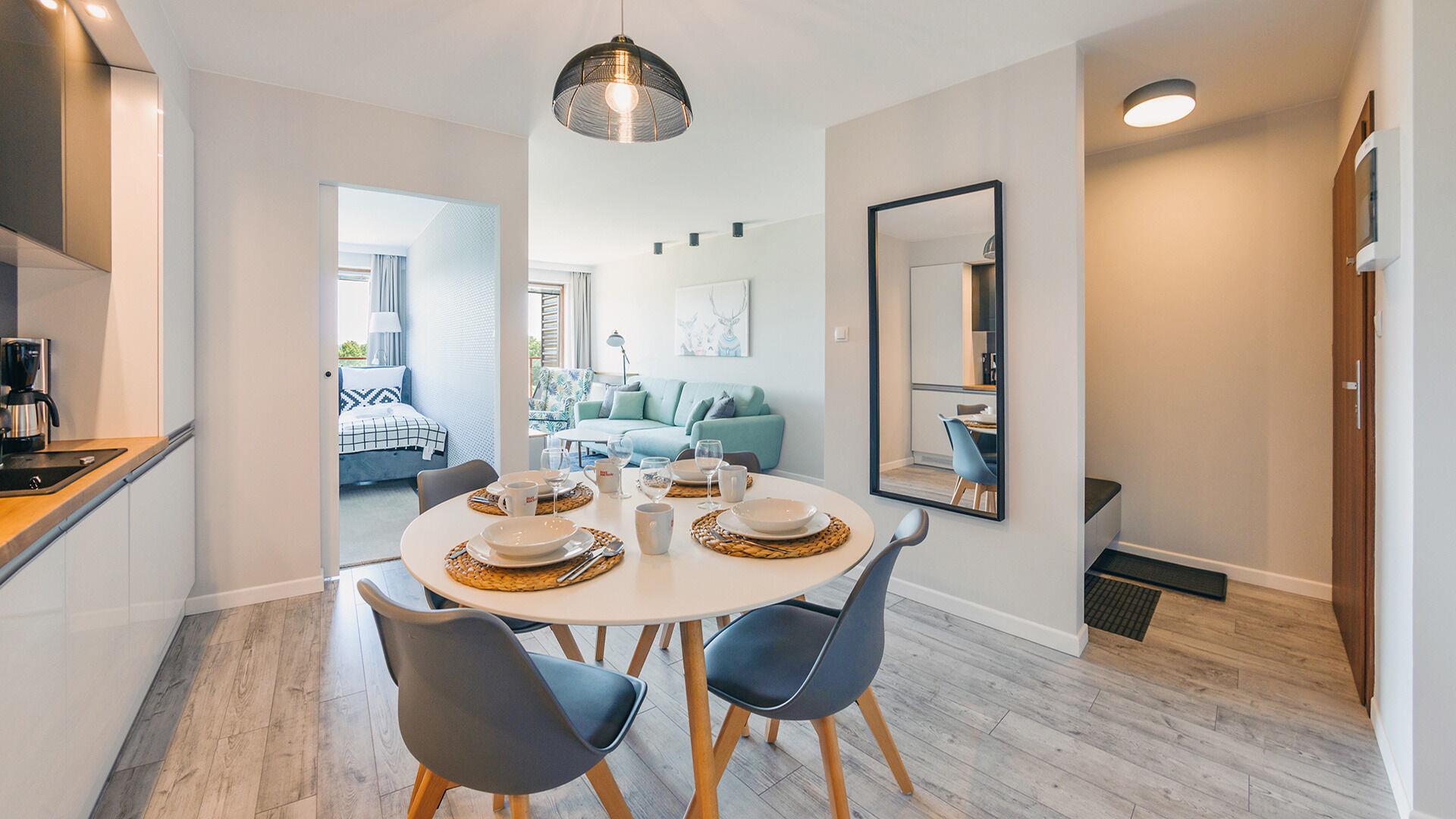Die Apartments im Resorts Kolobrzeg liegen im ruhigen, westlichen Teil der Stadt, umgeben vom NATURA-2000-Park und nur wenige Minuten vom breiten Weststrand sowie einem Hundestrand entfernt. Die Lage bietet saubere Luft, direkten Kontakt zur Natur und Zugang zu Rad- und Spazierwegen. Die Apartments sind hochwertig ausgestattet und verfügen über voll ausgestattete Küchenzeilen sowie große Terrassen. Auf dem Gelände stehen nummerierte Außenparkplätze und Tiefgaragenplätze gegen Aufpreis zur Verfügung, zudem gibt es einen öffentlichen, kostenpflichtigen Parkplatz vor dem Gebäude. Gästen stehen ein täglich geöffneter Pool sowie eine Sauna zur Verfügung. Kolobrzeg bietet das ganze Jahr über zahlreiche Freizeit- und Kulturangebote sowie eine vielfältige Gastronomie.