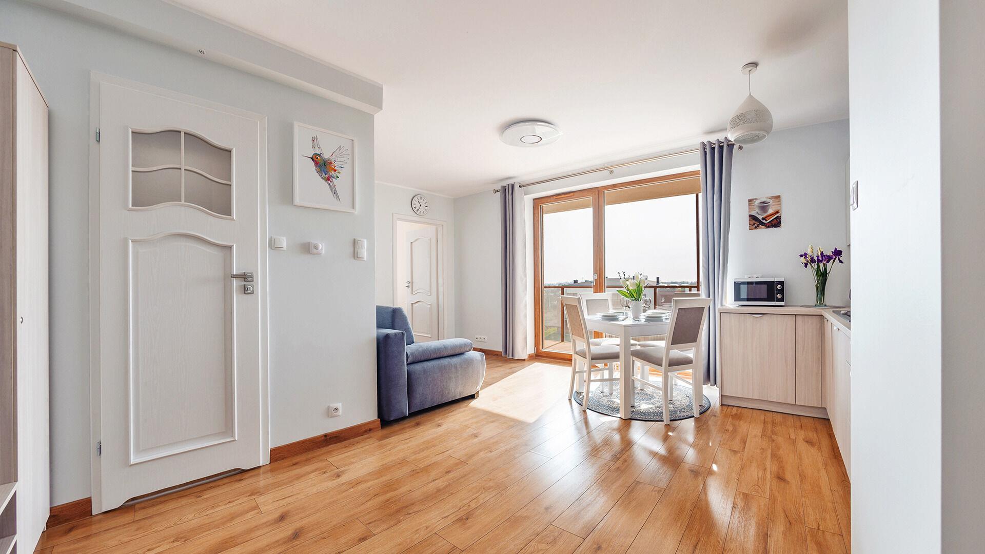 Die Apartments im Objekt Resorts Kolobrzeg befinden sich im westlichen Teil von Kolobrzeg, abseits des städtischen Trubels, umgeben vom Grün des NATURA-2000-Parks. Diese Lage garantiert saubere Luft, malerische Ausblicke und direkten Kontakt zur Natur. Die Plazowa-Straße mit ihren breiten Gehwegen und Radwegen ist ein Teil der R10-Fahrradroute. Ein fünfminütiger Spaziergang über einen direkten Zugang zum Meer reicht aus, um den breiten, sandigen „Weststrand” zu erreichen; ganz in der Nähe befindet sich auch ein Hundestrand. Alle Apartments sind hochwertig ausgestattet und verfügen über funktionale, voll ausgestattete Küchenzeilen sowie geräumige Terrassen mit Blick auf den Innenhof oder das Grün des NATURA-2000-Parks. Vor dem Gebäude gibt es einen öffentlichen, kostenpflichtigen Stadtparkplatz (begrenzte Anzahl an Stellplätzen). Auf dem Gelände stehen ein nummerierter Außenparkplatz sowie Parkplätze in der Tiefgarage zur Verfügung, die den meisten Apartments zugeordnet sind und gegen Aufpreis genutzt werden können. Im Objekt befindet sich ein Schwimmbad, das täglich von 10:00 bis 21:00 Uhr geöffnet ist, sowie eine Sauna, die täglich von 16:00 bis 21:00 Uhr geöffnet ist. Der Pool befindet sich im Gebäude A; aus Gebäude B gibt es keinen direkten Zugang zu Gebäude A.