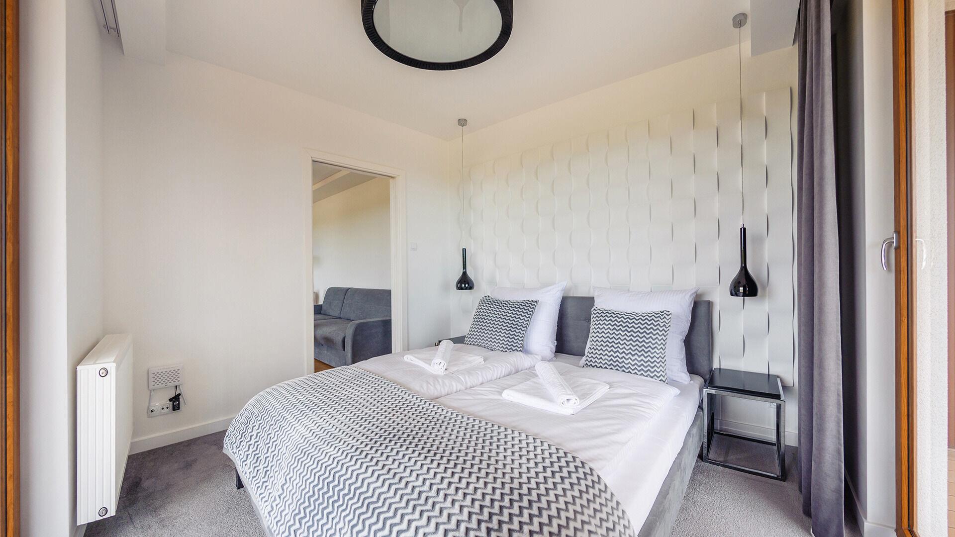 Die Apartments im Resorts Kolobrzeg liegen im ruhigen, westlichen Teil der Stadt, umgeben vom NATURA-2000-Park und nur wenige Minuten vom breiten Weststrand sowie einem Hundestrand entfernt. Die Lage bietet saubere Luft, direkten Kontakt zur Natur und Zugang zu Rad- und Spazierwegen. Die Apartments sind hochwertig ausgestattet und verfügen über voll ausgestattete Küchenzeilen sowie große Terrassen. Auf dem Gelände stehen nummerierte Außenparkplätze und Tiefgaragenplätze gegen Aufpreis zur Verfügung, zudem gibt es einen öffentlichen, kostenpflichtigen Parkplatz vor dem Gebäude. Gästen stehen ein täglich geöffneter Pool sowie eine Sauna zur Verfügung. Kolobrzeg bietet das ganze Jahr über zahlreiche Freizeit- und Kulturangebote sowie eine vielfältige Gastronomie.