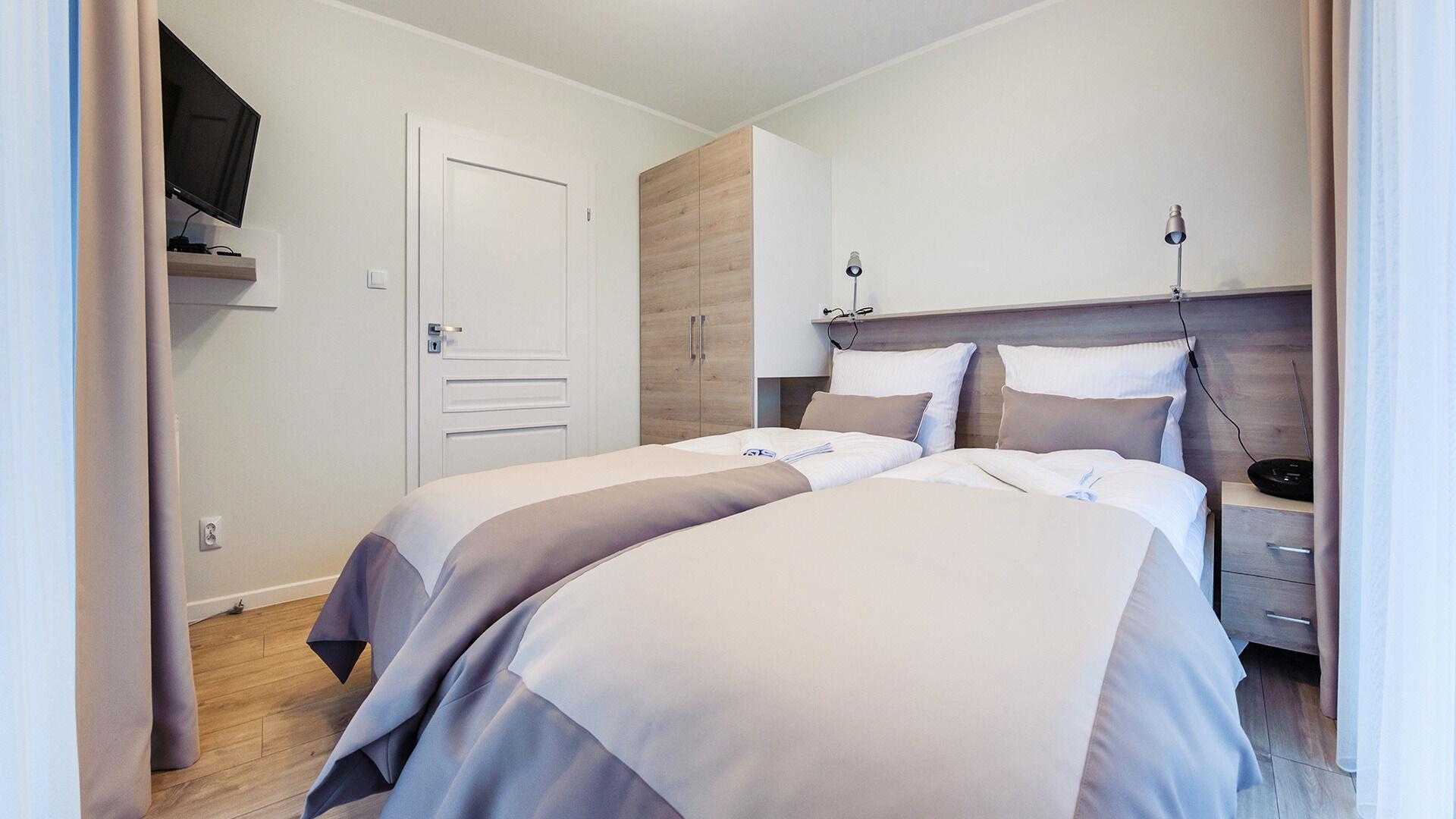 Die Apartments im Objekt Resorts Kolobrzeg befinden sich im westlichen Teil von Kolobrzeg, abseits des städtischen Trubels, umgeben vom Grün des NATURA-2000-Parks. Diese Lage garantiert saubere Luft, malerische Ausblicke und direkten Kontakt zur Natur. Die Plazowa-Straße mit ihren breiten Gehwegen und Radwegen ist ein Teil der R10-Fahrradroute. Ein fünfminütiger Spaziergang über einen direkten Zugang zum Meer reicht aus, um den breiten, sandigen „Weststrand” zu erreichen; ganz in der Nähe befindet sich auch ein Hundestrand. Alle Apartments sind hochwertig ausgestattet und verfügen über funktionale, voll ausgestattete Küchenzeilen sowie geräumige Terrassen mit Blick auf den Innenhof oder das Grün des NATURA-2000-Parks. Vor dem Gebäude gibt es einen öffentlichen, kostenpflichtigen Stadtparkplatz (begrenzte Anzahl an Stellplätzen). Auf dem Gelände stehen ein nummerierter Außenparkplatz sowie Parkplätze in der Tiefgarage zur Verfügung, die den meisten Apartments zugeordnet sind und gegen Aufpreis genutzt werden können. Im Objekt befindet sich ein Schwimmbad, das täglich von 10:00 bis 21:00 Uhr geöffnet ist, sowie eine Sauna, die täglich von 16:00 bis 21:00 Uhr geöffnet ist. Der Pool befindet sich im Gebäude A; aus Gebäude B gibt es keinen direkten Zugang zu Gebäude A.