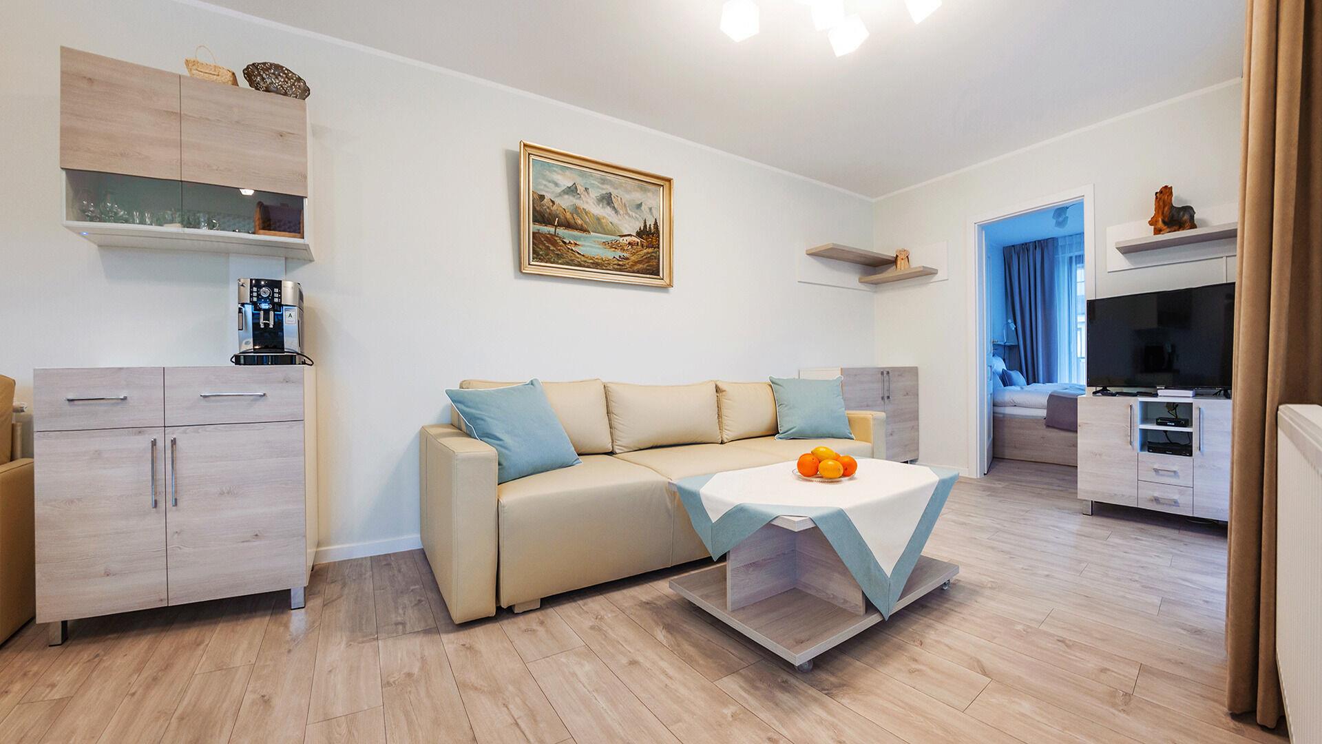 Die Apartments im Resorts Kolobrzeg liegen im ruhigen, westlichen Teil der Stadt, umgeben vom NATURA-2000-Park und nur wenige Minuten vom breiten Weststrand sowie einem Hundestrand entfernt. Die Lage bietet saubere Luft, direkten Kontakt zur Natur und Zugang zu Rad- und Spazierwegen. Die Apartments sind hochwertig ausgestattet und verfügen über voll ausgestattete Küchenzeilen sowie große Terrassen. Auf dem Gelände stehen nummerierte Außenparkplätze und Tiefgaragenplätze gegen Aufpreis zur Verfügung, zudem gibt es einen öffentlichen, kostenpflichtigen Parkplatz vor dem Gebäude. Gästen stehen ein täglich geöffneter Pool sowie eine Sauna zur Verfügung. Kolobrzeg bietet das ganze Jahr über zahlreiche Freizeit- und Kulturangebote sowie eine vielfältige Gastronomie.