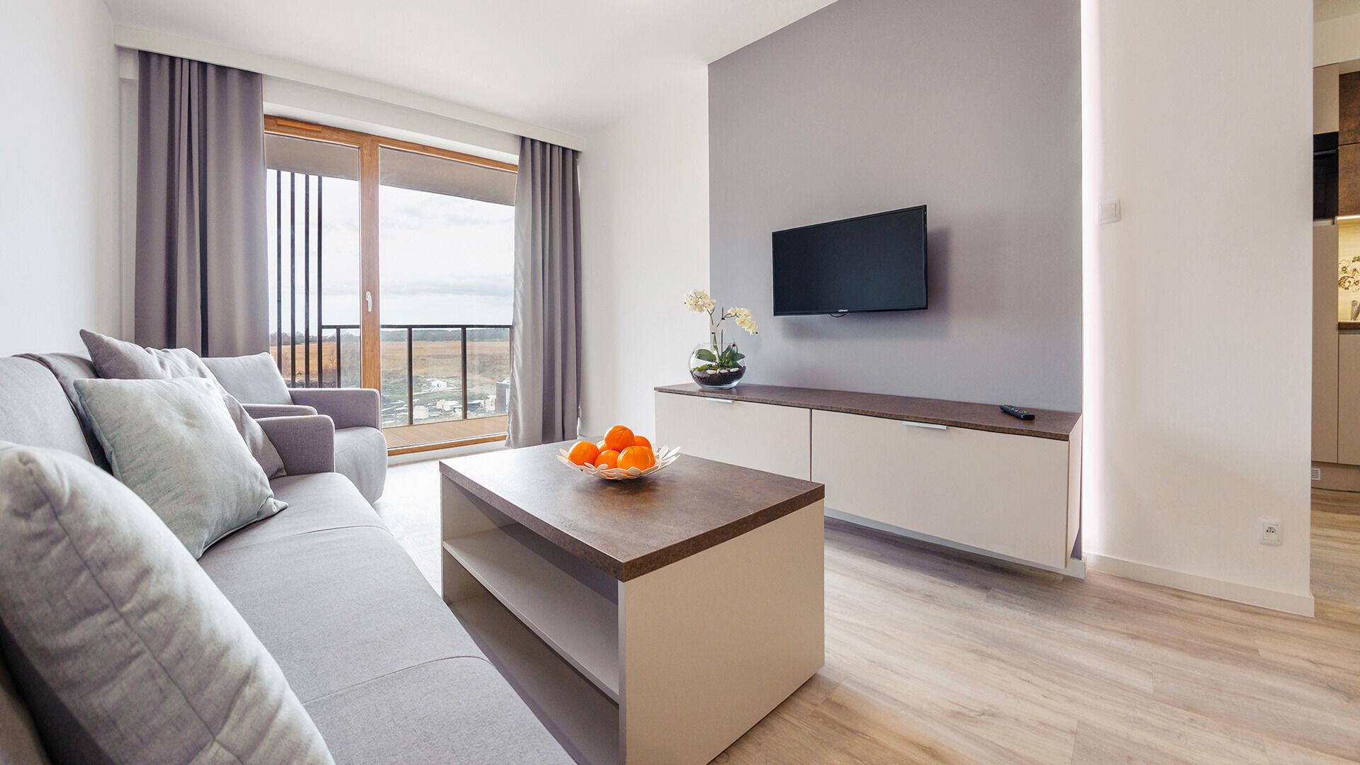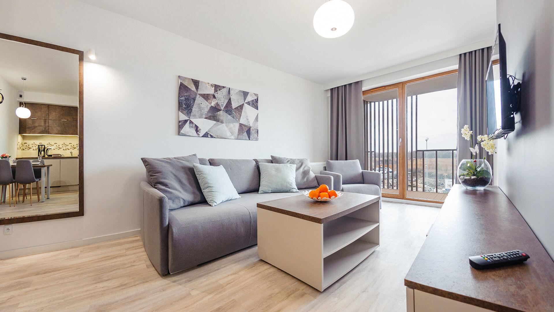 • Haustiere sind in der ausgewählten Wohnung erlaubt. Die Kosten für den Aufenthalt mit einem Haustier betragen 40 PLN pro Tag.