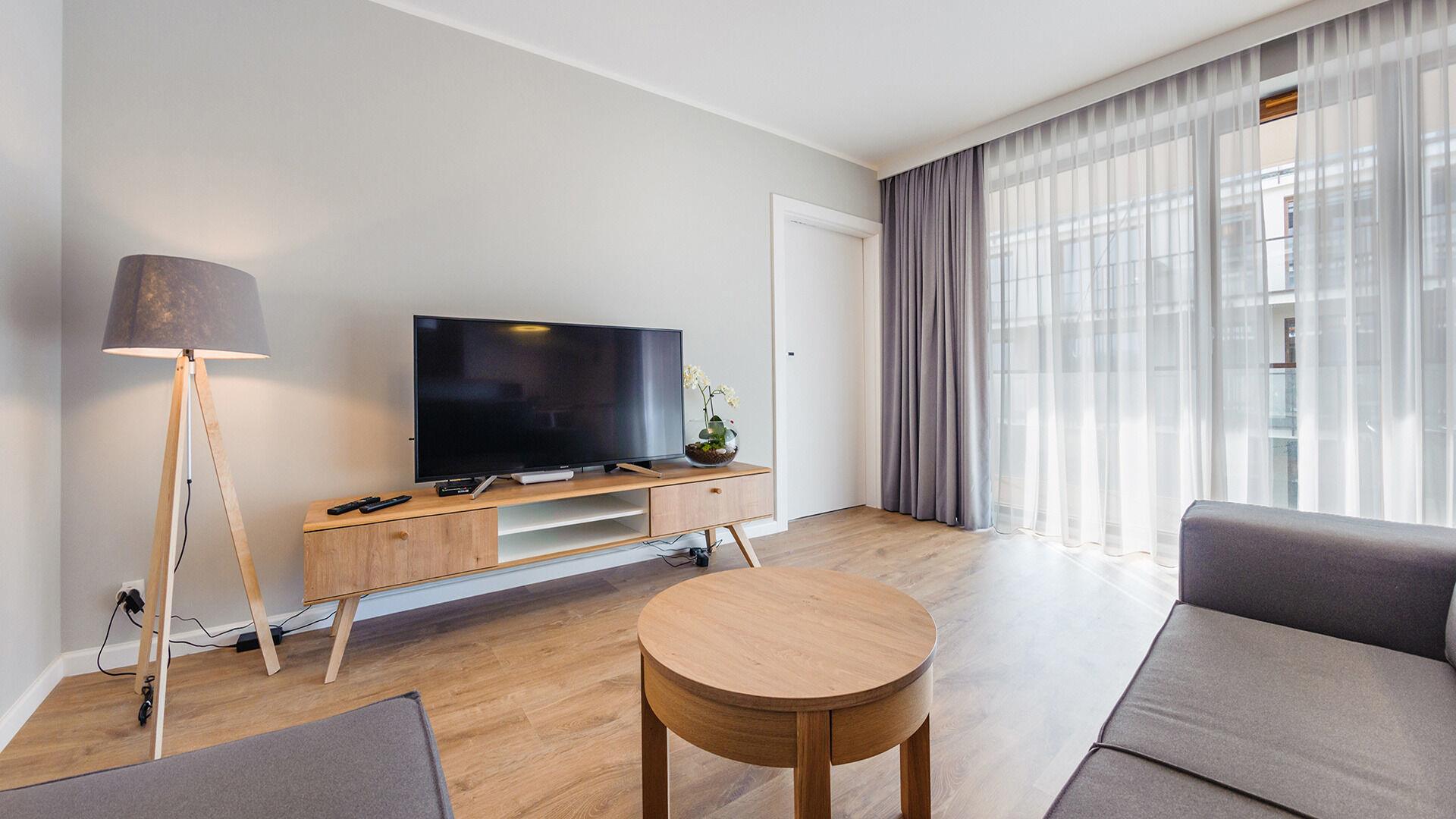 Die Apartments im Objekt Resorts Kolobrzeg befinden sich im westlichen Teil von Kolobrzeg, abseits des städtischen Trubels, umgeben vom Grün des NATURA-2000-Parks. Diese Lage garantiert saubere Luft, malerische Ausblicke und direkten Kontakt zur Natur. Die Plazowa-Straße mit ihren breiten Gehwegen und Radwegen ist ein Teil der R10-Fahrradroute. Ein fünfminütiger Spaziergang über einen direkten Zugang zum Meer reicht aus, um den breiten, sandigen „Weststrand” zu erreichen; ganz in der Nähe befindet sich auch ein Hundestrand. Alle Apartments sind hochwertig ausgestattet und verfügen über funktionale, voll ausgestattete Küchenzeilen sowie geräumige Terrassen mit Blick auf den Innenhof oder das Grün des NATURA-2000-Parks. Vor dem Gebäude gibt es einen öffentlichen, kostenpflichtigen Stadtparkplatz (begrenzte Anzahl an Stellplätzen). Auf dem Gelände stehen ein nummerierter Außenparkplatz sowie Parkplätze in der Tiefgarage zur Verfügung, die den meisten Apartments zugeordnet sind und gegen Aufpreis genutzt werden können. Im Objekt befindet sich ein Schwimmbad, das täglich von 10:00 bis 21:00 Uhr geöffnet ist, sowie eine Sauna, die täglich von 16:00 bis 21:00 Uhr geöffnet ist. Der Pool befindet sich im Gebäude A; aus Gebäude B gibt es keinen direkten Zugang zu Gebäude A.