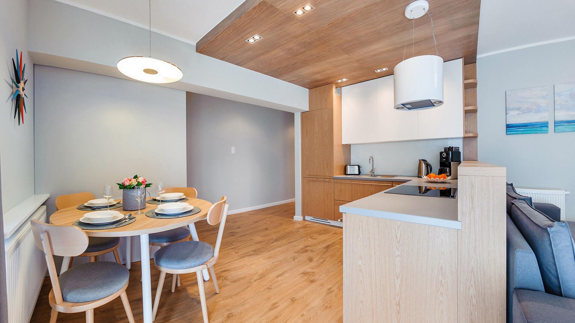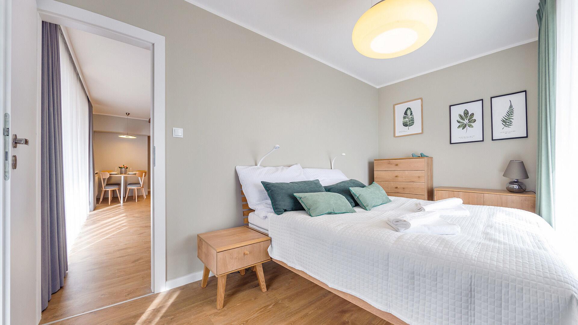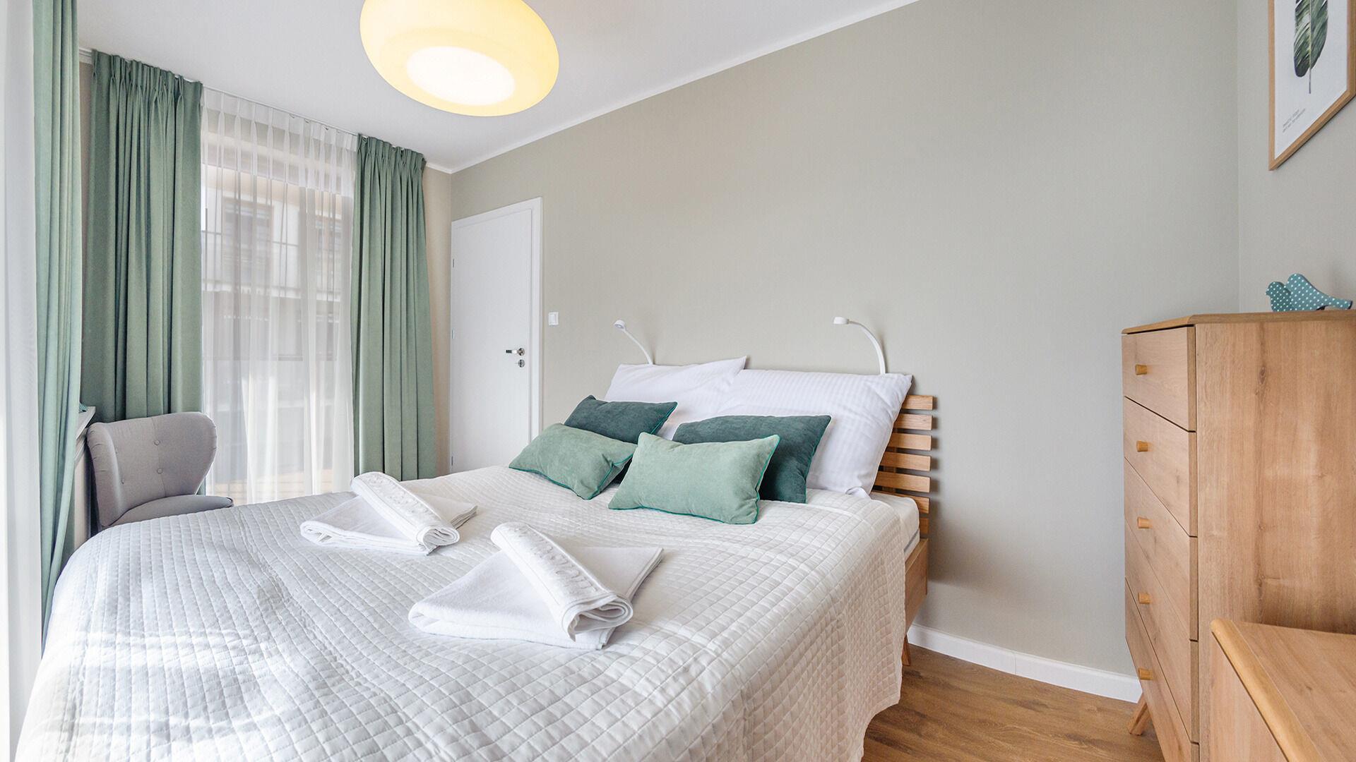Die Apartments im Resorts Kolobrzeg liegen im ruhigen, westlichen Teil der Stadt, umgeben vom NATURA-2000-Park und nur wenige Minuten vom breiten Weststrand sowie einem Hundestrand entfernt. Die Lage bietet saubere Luft, direkten Kontakt zur Natur und Zugang zu Rad- und Spazierwegen. Die Apartments sind hochwertig ausgestattet und verfügen über voll ausgestattete Küchenzeilen sowie große Terrassen. Auf dem Gelände stehen nummerierte Außenparkplätze und Tiefgaragenplätze gegen Aufpreis zur Verfügung, zudem gibt es einen öffentlichen, kostenpflichtigen Parkplatz vor dem Gebäude. Gästen stehen ein täglich geöffneter Pool sowie eine Sauna zur Verfügung. Kolobrzeg bietet das ganze Jahr über zahlreiche Freizeit- und Kulturangebote sowie eine vielfältige Gastronomie.