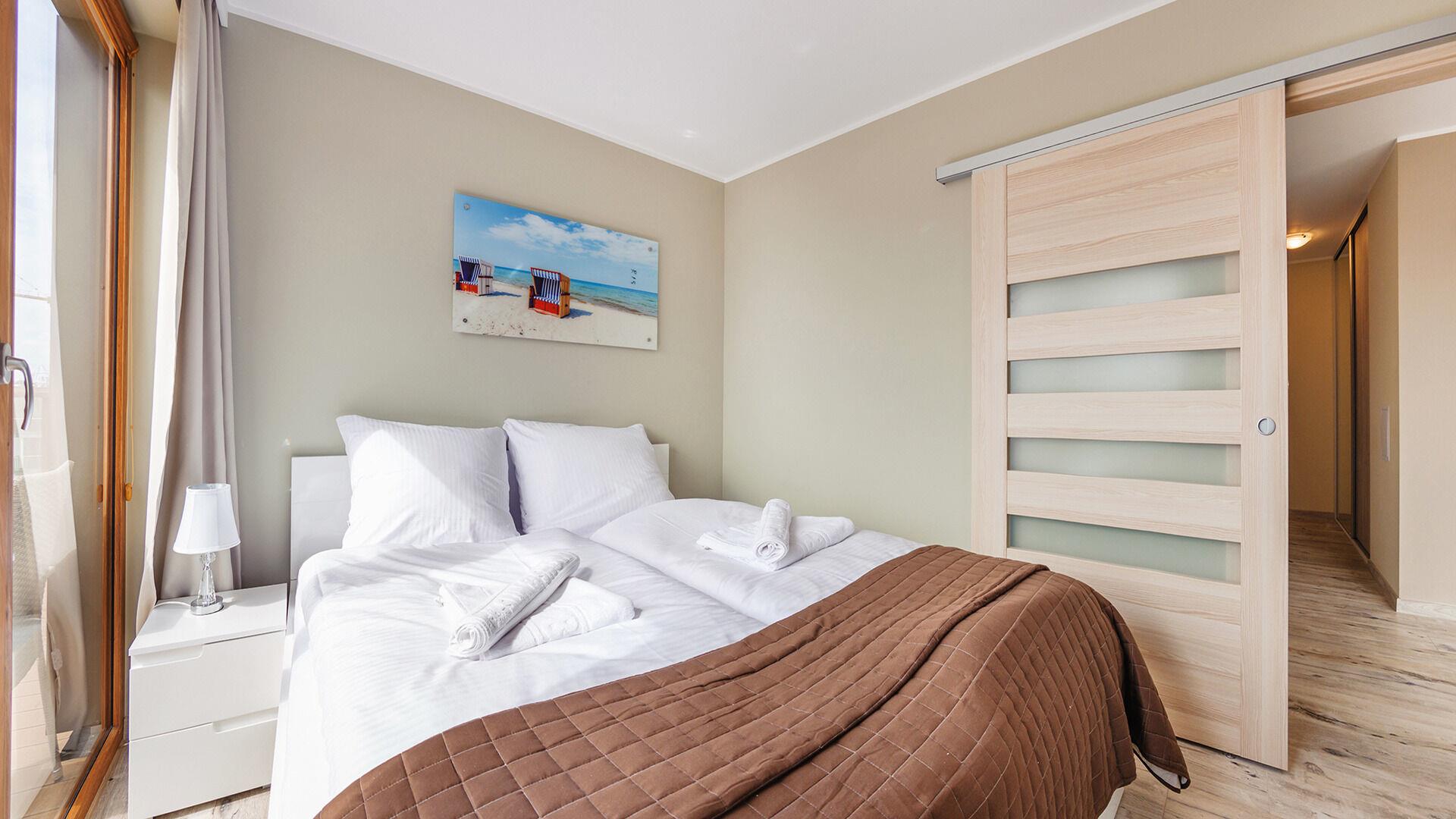Die Apartments im Resorts Kolobrzeg liegen im ruhigen, westlichen Teil der Stadt, umgeben vom NATURA-2000-Park und nur wenige Minuten vom breiten Weststrand sowie einem Hundestrand entfernt. Die Lage bietet saubere Luft, direkten Kontakt zur Natur und Zugang zu Rad- und Spazierwegen. Die Apartments sind hochwertig ausgestattet und verfügen über voll ausgestattete Küchenzeilen sowie große Terrassen. Auf dem Gelände stehen nummerierte Außenparkplätze und Tiefgaragenplätze gegen Aufpreis zur Verfügung, zudem gibt es einen öffentlichen, kostenpflichtigen Parkplatz vor dem Gebäude. Gästen stehen ein täglich geöffneter Pool sowie eine Sauna zur Verfügung. Kolobrzeg bietet das ganze Jahr über zahlreiche Freizeit- und Kulturangebote sowie eine vielfältige Gastronomie.