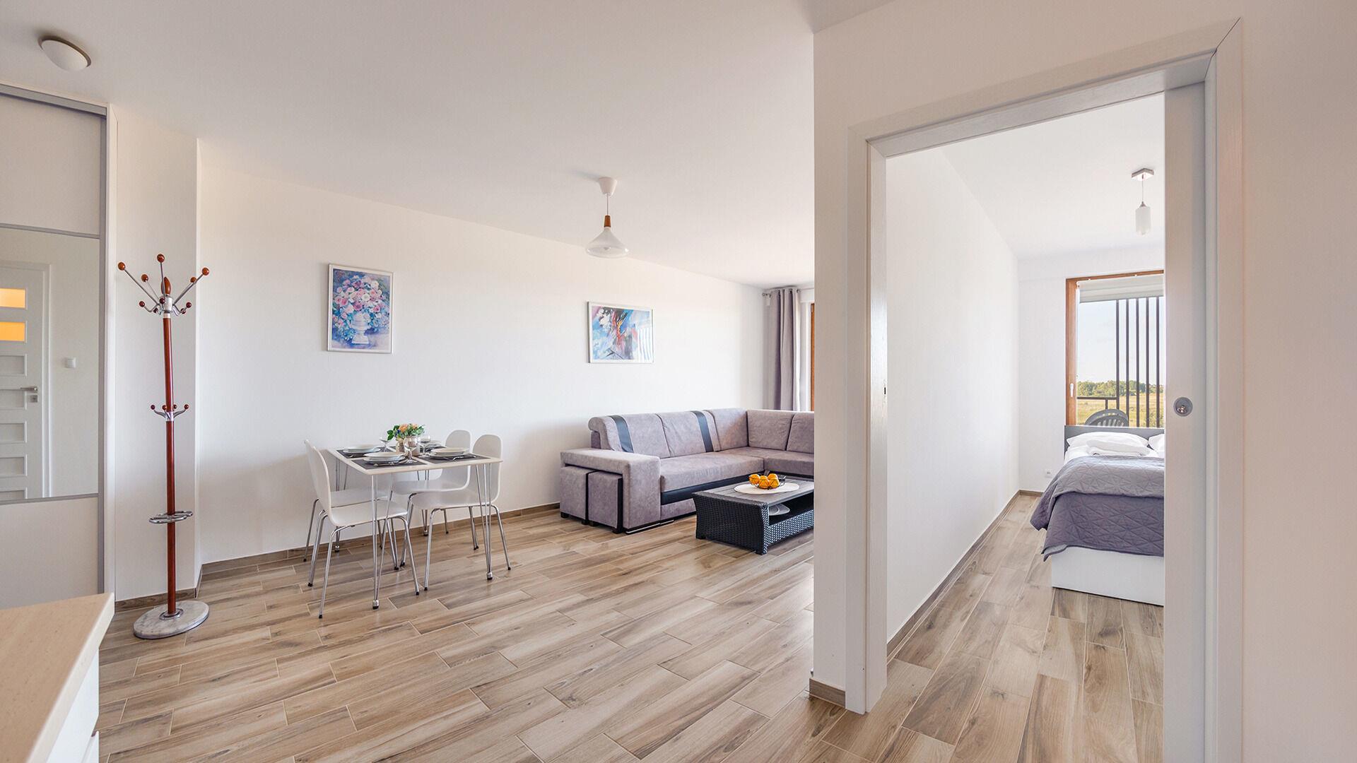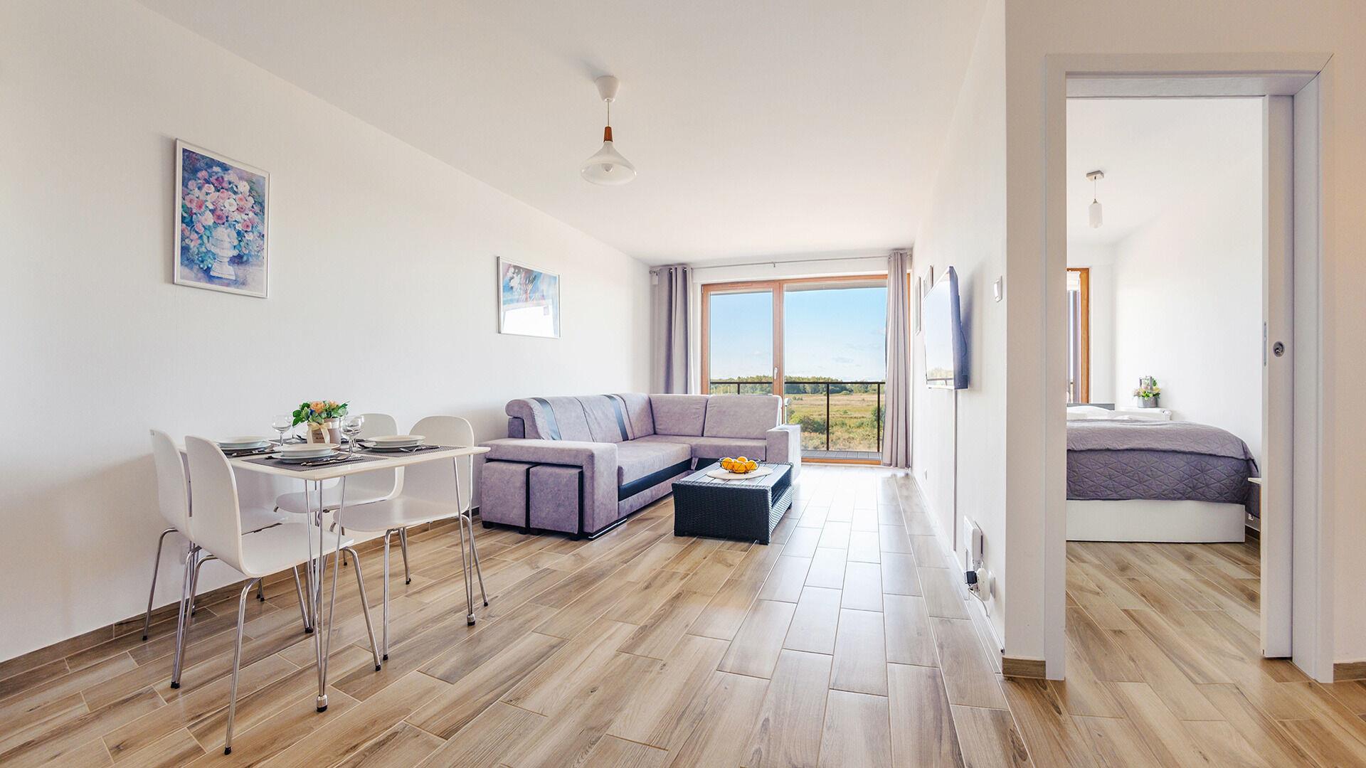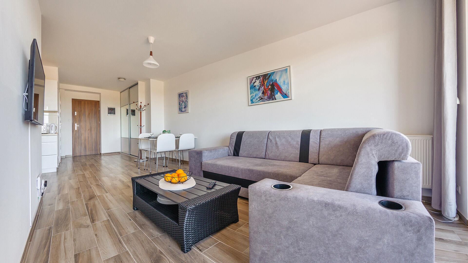 Die Apartments im Resorts Kolobrzeg liegen im ruhigen, westlichen Teil der Stadt, umgeben vom NATURA-2000-Park und nur wenige Minuten vom breiten Weststrand sowie einem Hundestrand entfernt. Die Lage bietet saubere Luft, direkten Kontakt zur Natur und Zugang zu Rad- und Spazierwegen. Die Apartments sind hochwertig ausgestattet und verfügen über voll ausgestattete Küchenzeilen sowie große Terrassen. Auf dem Gelände stehen nummerierte Außenparkplätze und Tiefgaragenplätze gegen Aufpreis zur Verfügung, zudem gibt es einen öffentlichen, kostenpflichtigen Parkplatz vor dem Gebäude. Gästen stehen ein täglich geöffneter Pool sowie eine Sauna zur Verfügung. Kolobrzeg bietet das ganze Jahr über zahlreiche Freizeit- und Kulturangebote sowie eine vielfältige Gastronomie.