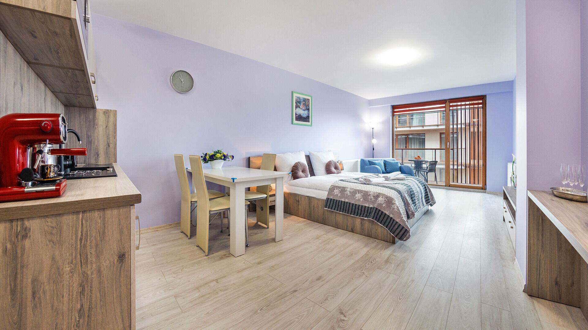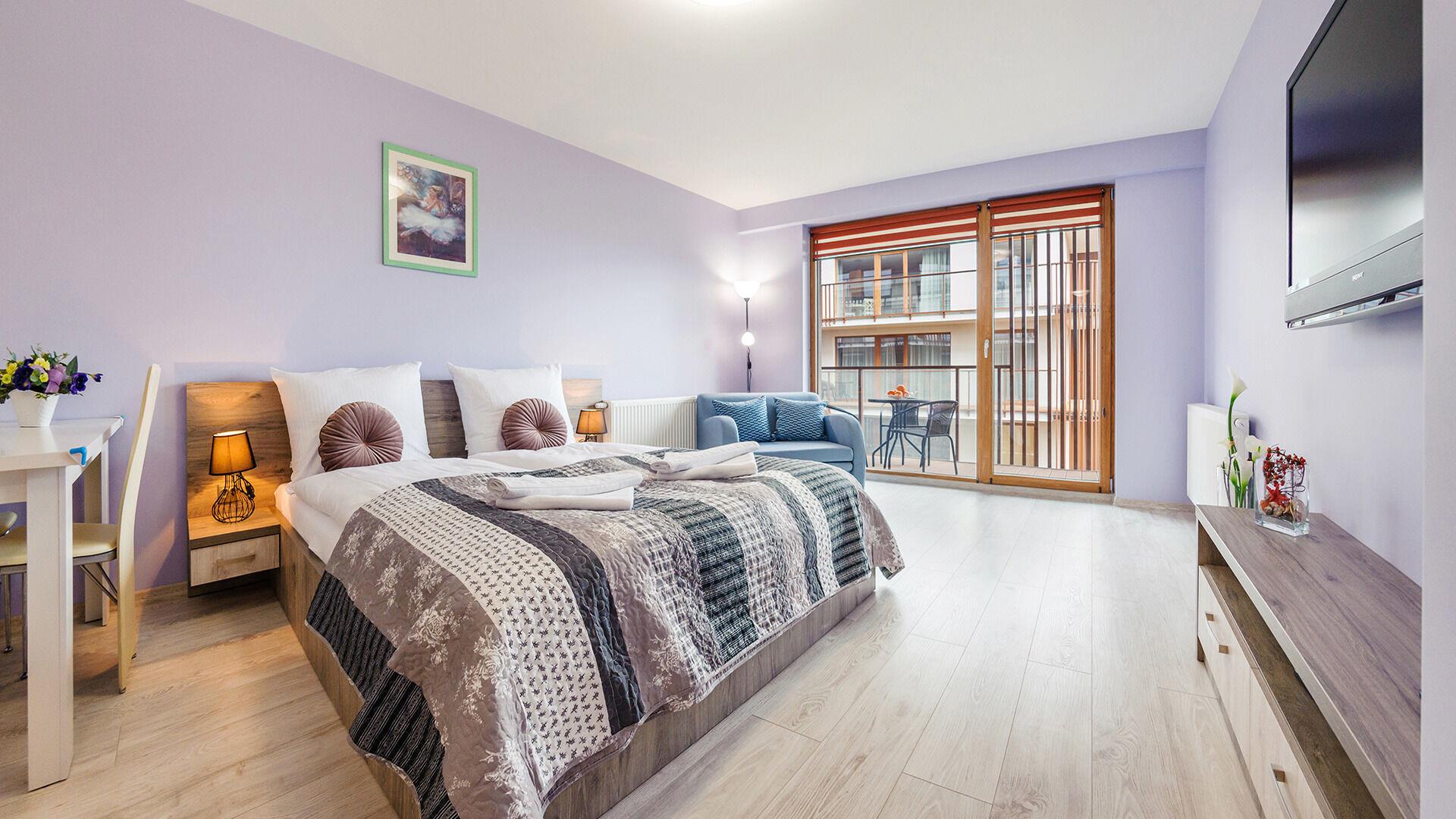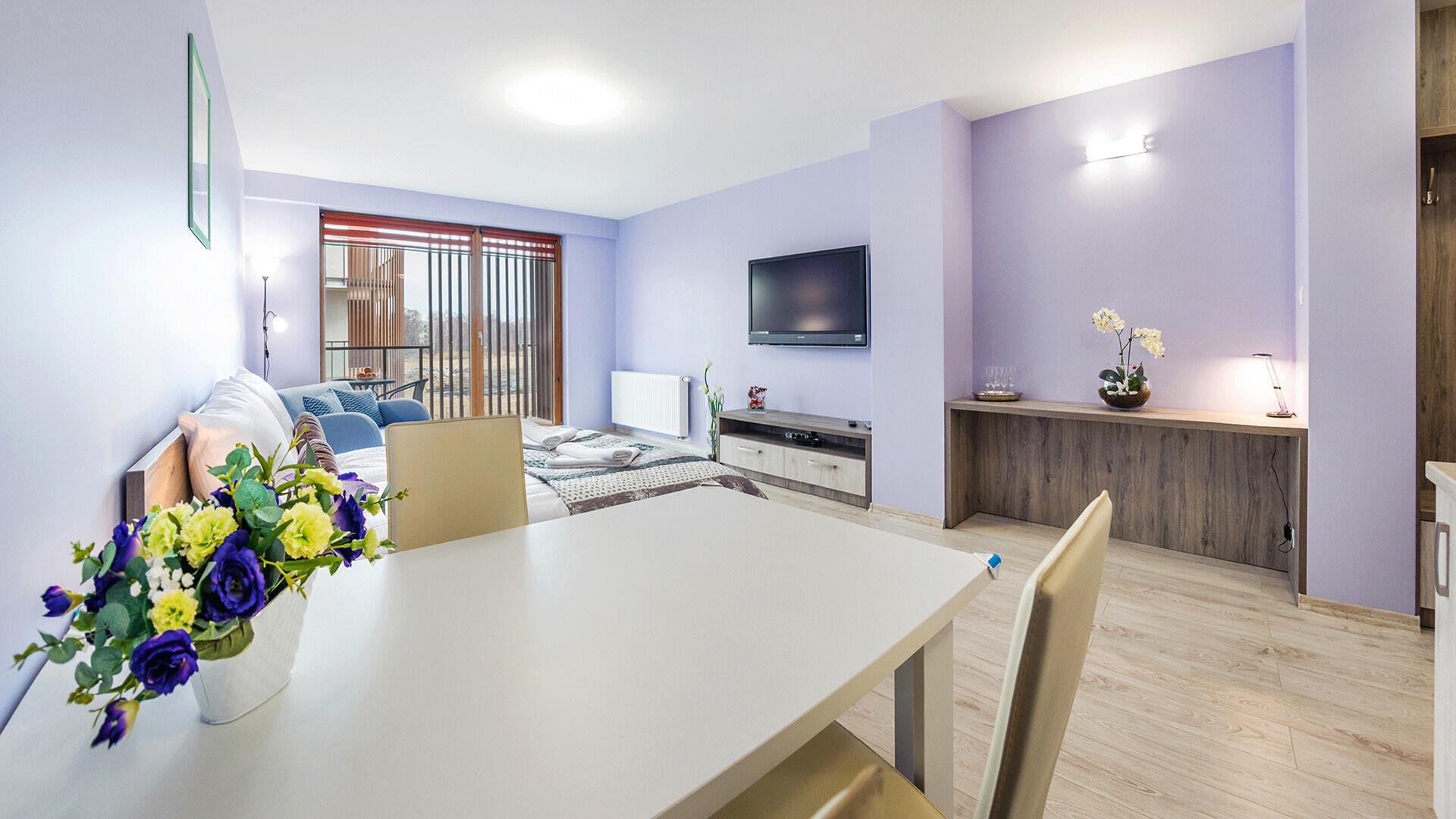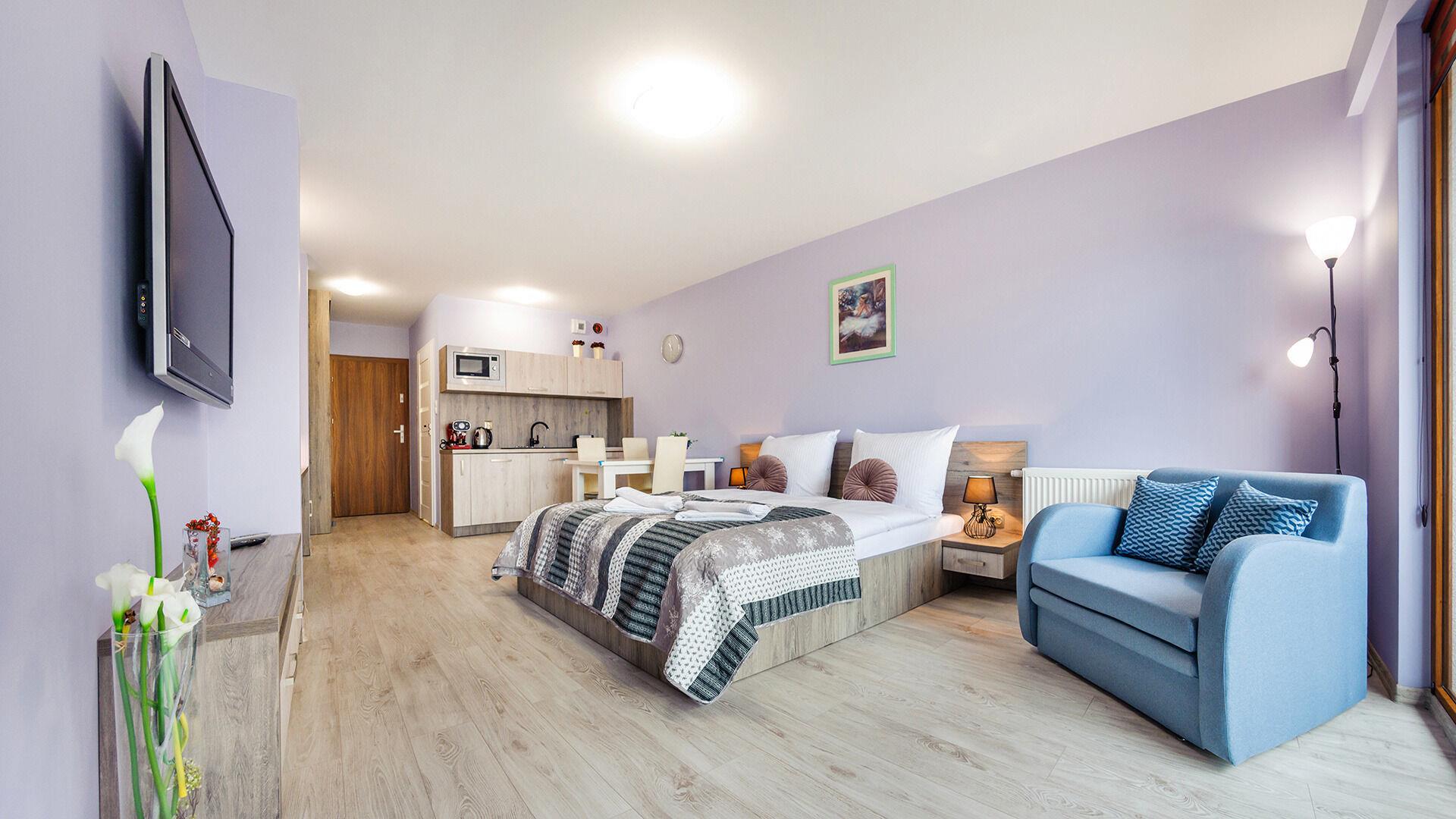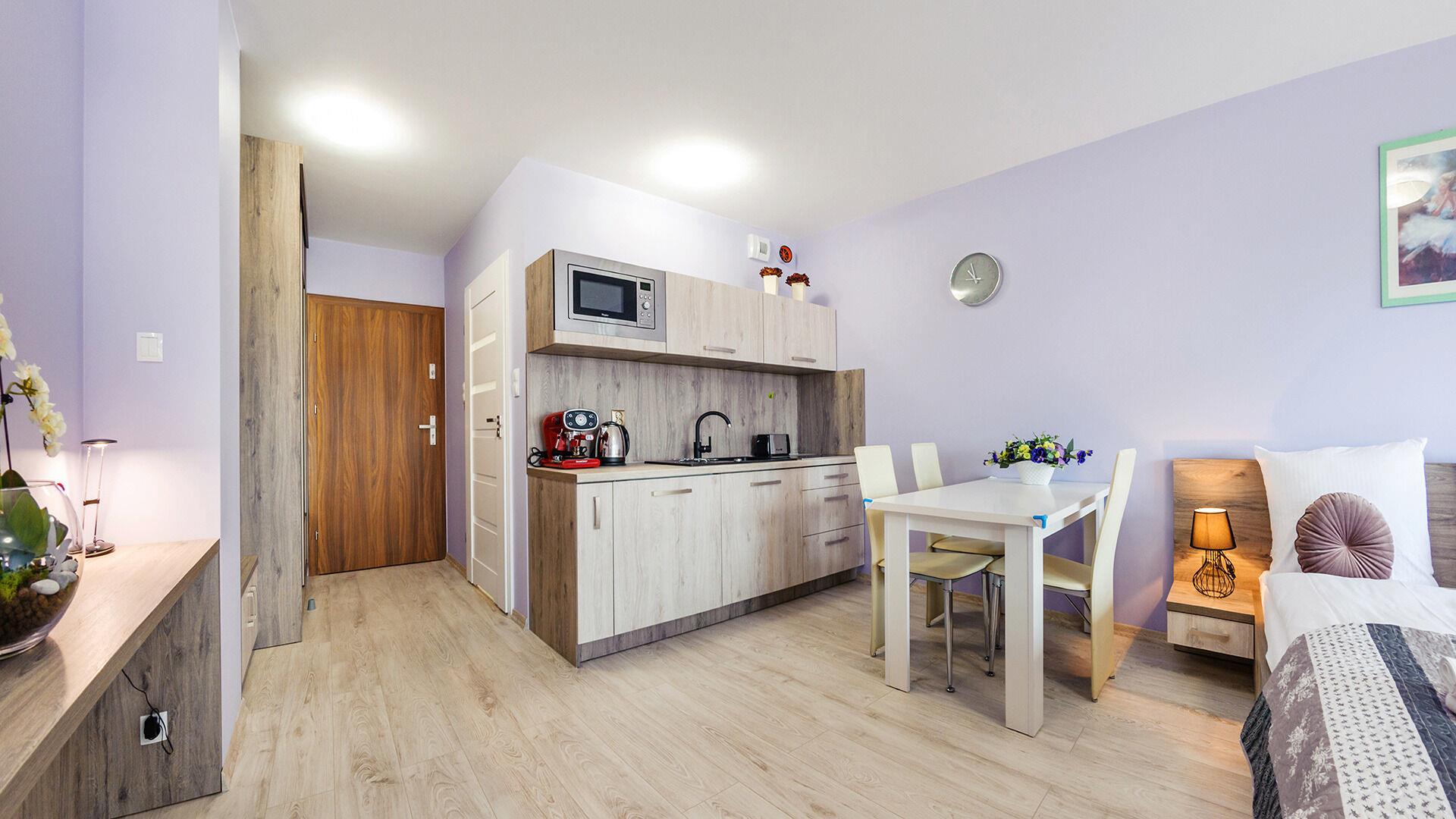Die Apartments im Objekt Resorts Kolobrzeg befinden sich im westlichen Teil von Kolobrzeg, abseits des städtischen Trubels, umgeben vom Grün des NATURA-2000-Parks. Diese Lage garantiert saubere Luft, malerische Ausblicke und direkten Kontakt zur Natur. Die Plazowa-Straße mit ihren breiten Gehwegen und Radwegen ist ein Teil der R10-Fahrradroute. Ein fünfminütiger Spaziergang über einen direkten Zugang zum Meer reicht aus, um den breiten, sandigen „Weststrand” zu erreichen; ganz in der Nähe befindet sich auch ein Hundestrand. Alle Apartments sind hochwertig ausgestattet und verfügen über funktionale, voll ausgestattete Küchenzeilen sowie geräumige Terrassen mit Blick auf den Innenhof oder das Grün des NATURA-2000-Parks. Vor dem Gebäude gibt es einen öffentlichen, kostenpflichtigen Stadtparkplatz (begrenzte Anzahl an Stellplätzen). Auf dem Gelände stehen ein nummerierter Außenparkplatz sowie Parkplätze in der Tiefgarage zur Verfügung, die den meisten Apartments zugeordnet sind und gegen Aufpreis genutzt werden können. Im Objekt befindet sich ein Schwimmbad, das täglich von 10:00 bis 21:00 Uhr geöffnet ist, sowie eine Sauna, die täglich von 16:00 bis 21:00 Uhr geöffnet ist. Der Pool befindet sich im Gebäude A; aus Gebäude B gibt es keinen direkten Zugang zu Gebäude A.