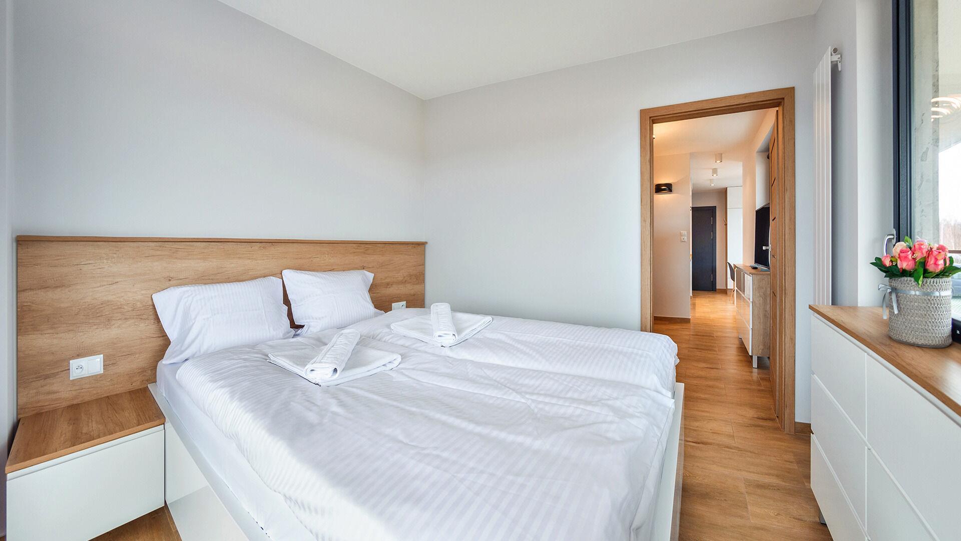 Die Apartments im Resorts Kolobrzeg liegen im ruhigen, westlichen Teil der Stadt, umgeben vom NATURA-2000-Park und nur wenige Minuten vom breiten Weststrand sowie einem Hundestrand entfernt. Die Lage bietet saubere Luft, direkten Kontakt zur Natur und Zugang zu Rad- und Spazierwegen. Die Apartments sind hochwertig ausgestattet und verfügen über voll ausgestattete Küchenzeilen sowie große Terrassen. Auf dem Gelände stehen nummerierte Außenparkplätze und Tiefgaragenplätze gegen Aufpreis zur Verfügung, zudem gibt es einen öffentlichen, kostenpflichtigen Parkplatz vor dem Gebäude. Gästen stehen ein täglich geöffneter Pool sowie eine Sauna zur Verfügung. Kolobrzeg bietet das ganze Jahr über zahlreiche Freizeit- und Kulturangebote sowie eine vielfältige Gastronomie.