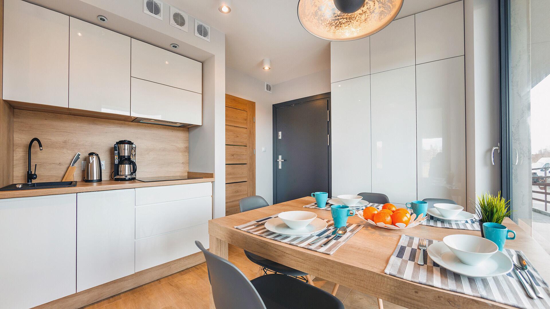 Die Apartments im Objekt Resorts Kolobrzeg befinden sich im westlichen Teil von Kolobrzeg, abseits des städtischen Trubels, umgeben vom Grün des NATURA-2000-Parks. Diese Lage garantiert saubere Luft, malerische Ausblicke und direkten Kontakt zur Natur. Die Plazowa-Straße mit ihren breiten Gehwegen und Radwegen ist ein Teil der R10-Fahrradroute. Ein fünfminütiger Spaziergang über einen direkten Zugang zum Meer reicht aus, um den breiten, sandigen „Weststrand” zu erreichen; ganz in der Nähe befindet sich auch ein Hundestrand. Alle Apartments sind hochwertig ausgestattet und verfügen über funktionale, voll ausgestattete Küchenzeilen sowie geräumige Terrassen mit Blick auf den Innenhof oder das Grün des NATURA-2000-Parks. Vor dem Gebäude gibt es einen öffentlichen, kostenpflichtigen Stadtparkplatz (begrenzte Anzahl an Stellplätzen). Auf dem Gelände stehen ein nummerierter Außenparkplatz sowie Parkplätze in der Tiefgarage zur Verfügung, die den meisten Apartments zugeordnet sind und gegen Aufpreis genutzt werden können. Im Objekt befindet sich ein Schwimmbad, das täglich von 10:00 bis 21:00 Uhr geöffnet ist, sowie eine Sauna, die täglich von 16:00 bis 21:00 Uhr geöffnet ist. Der Pool befindet sich im Gebäude A; aus Gebäude B gibt es keinen direkten Zugang zu Gebäude A.