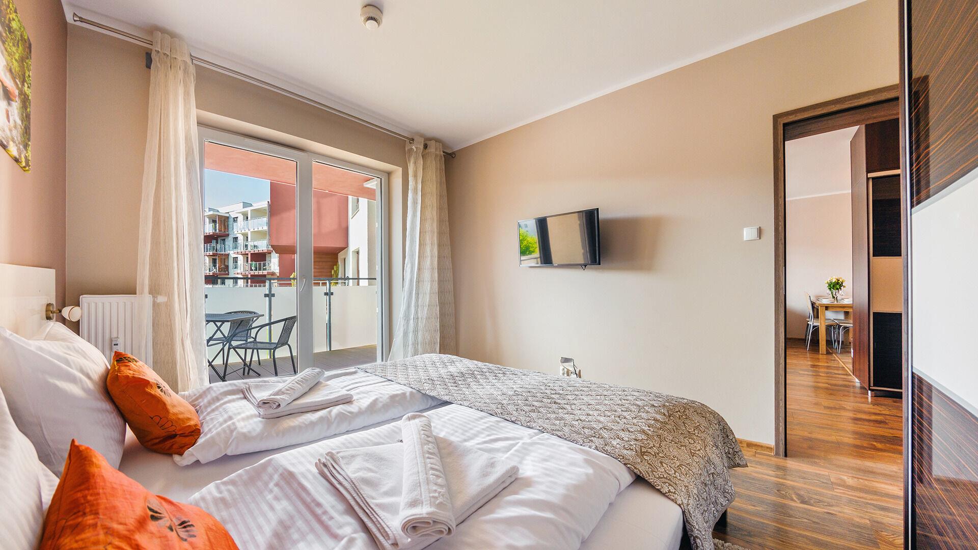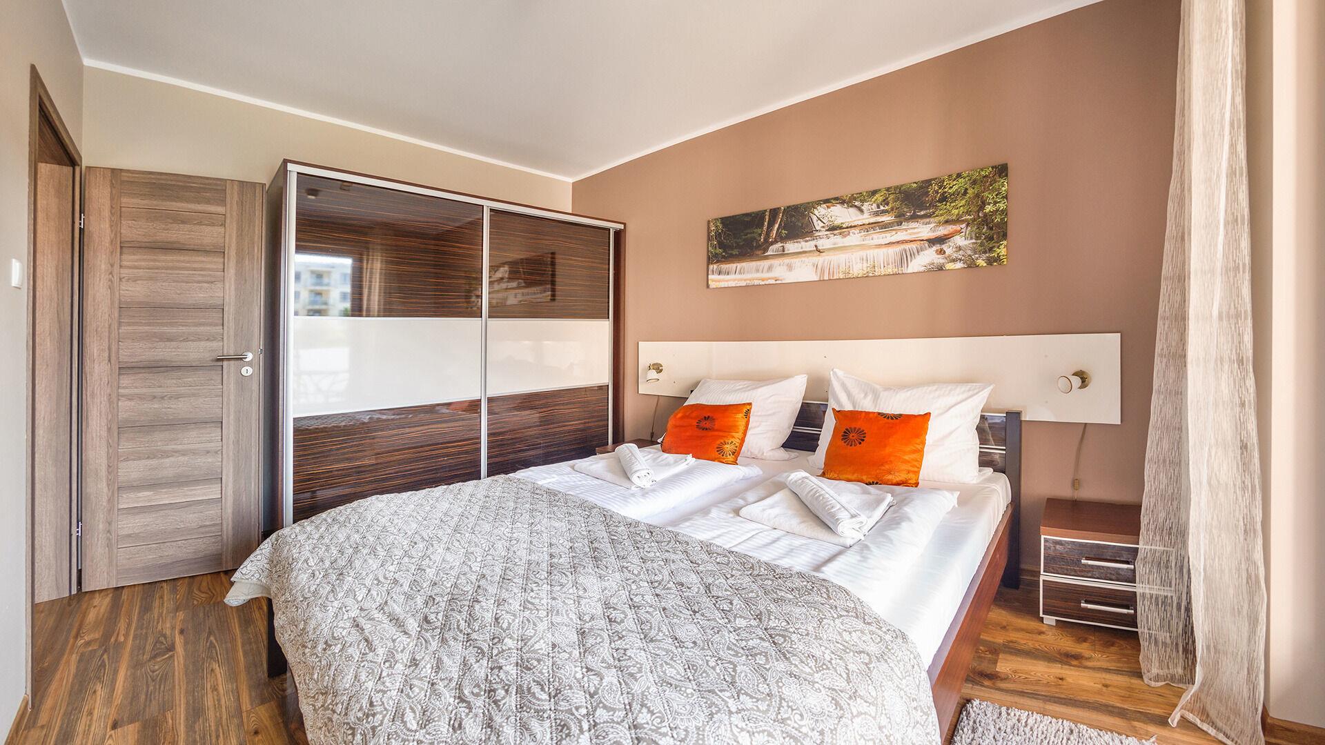 • Haustiere sind in der ausgewählten Wohnung erlaubt. Die Kosten für den Aufenthalt mit einem Haustier betragen 40 PLN pro Tag.