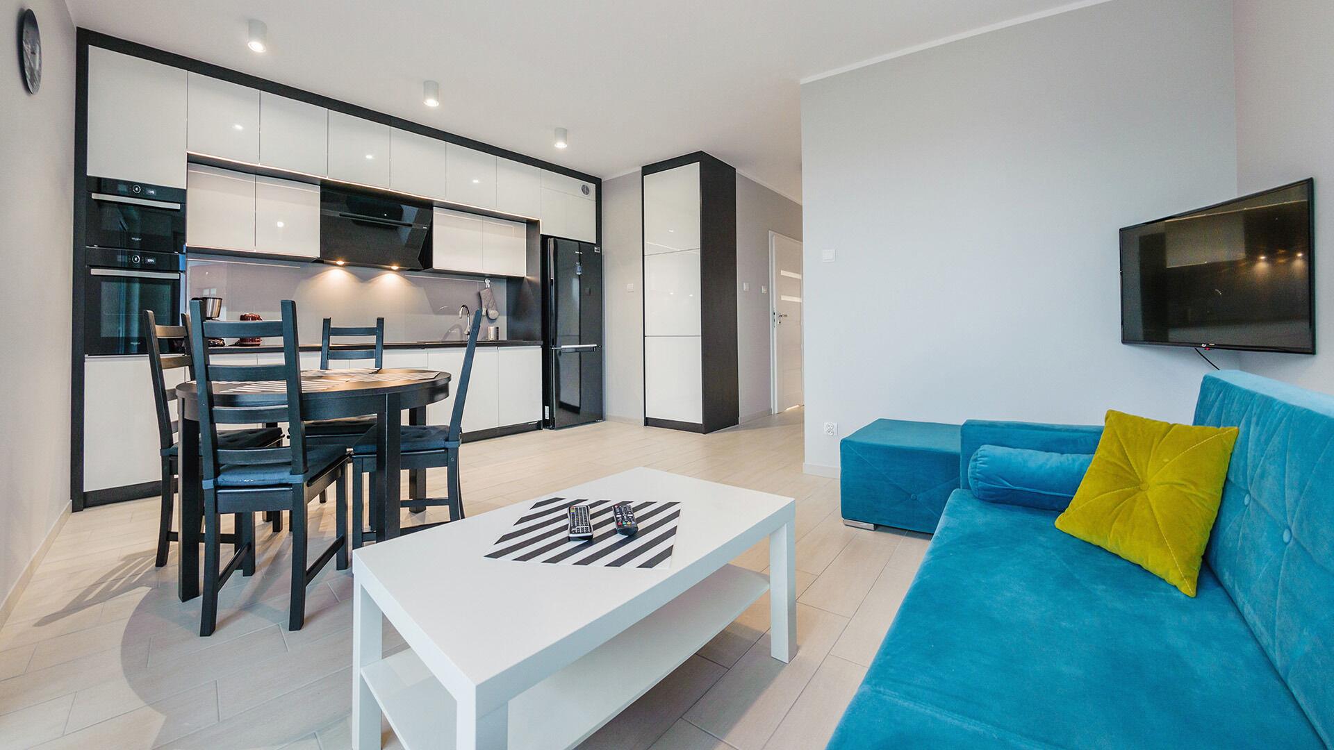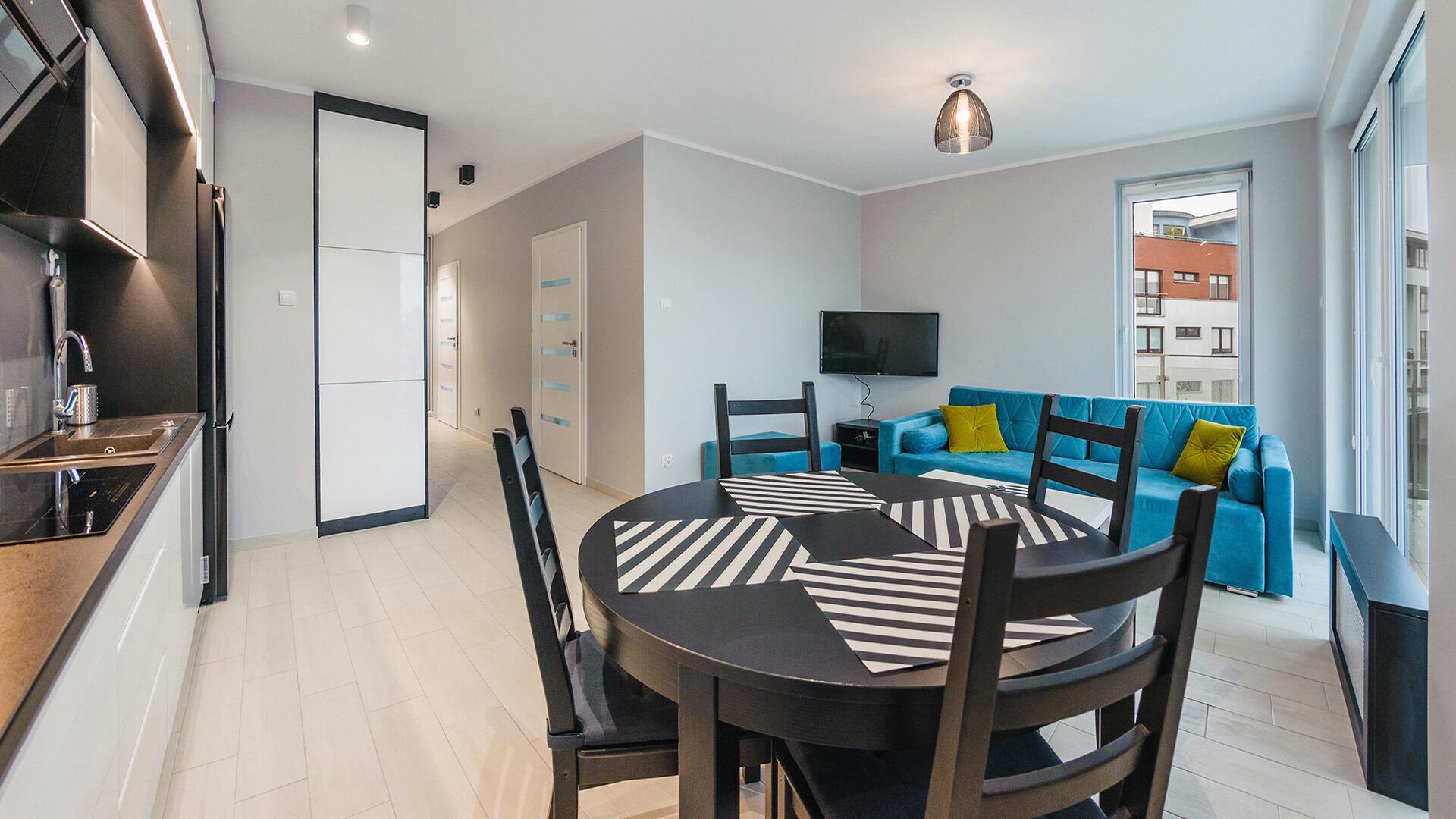 • Haustiere sind in der ausgewählten Wohnung erlaubt. Die Kosten für den Aufenthalt mit einem Haustier betragen 40 PLN pro Tag.