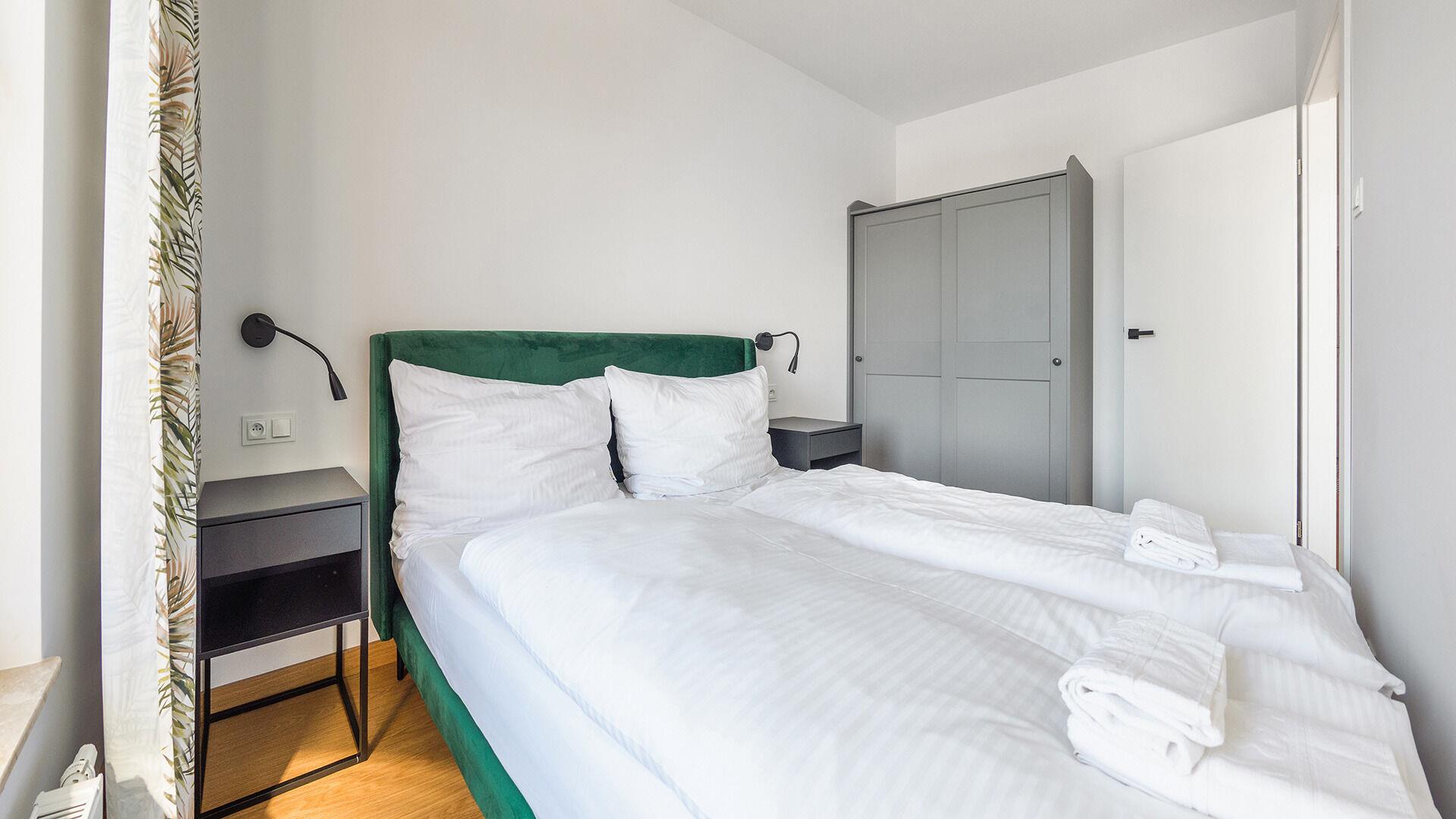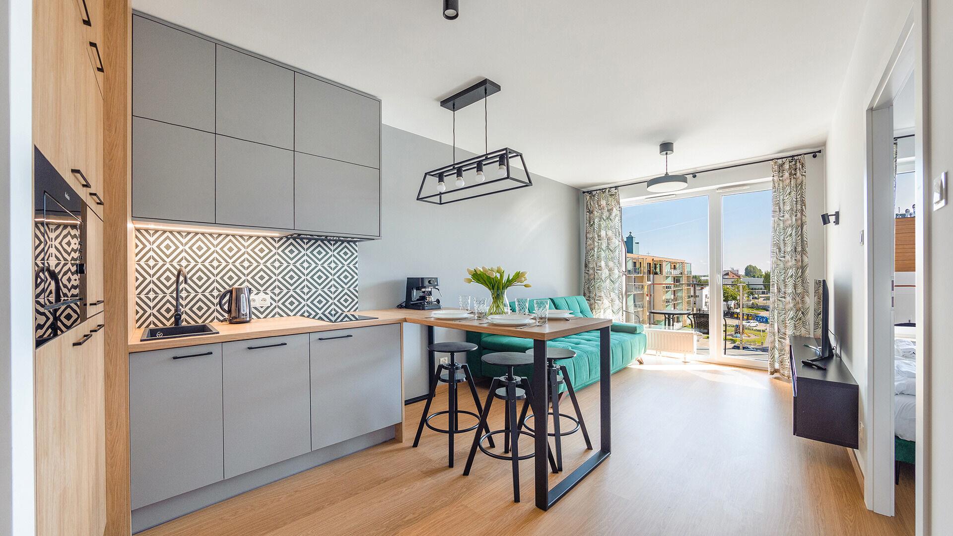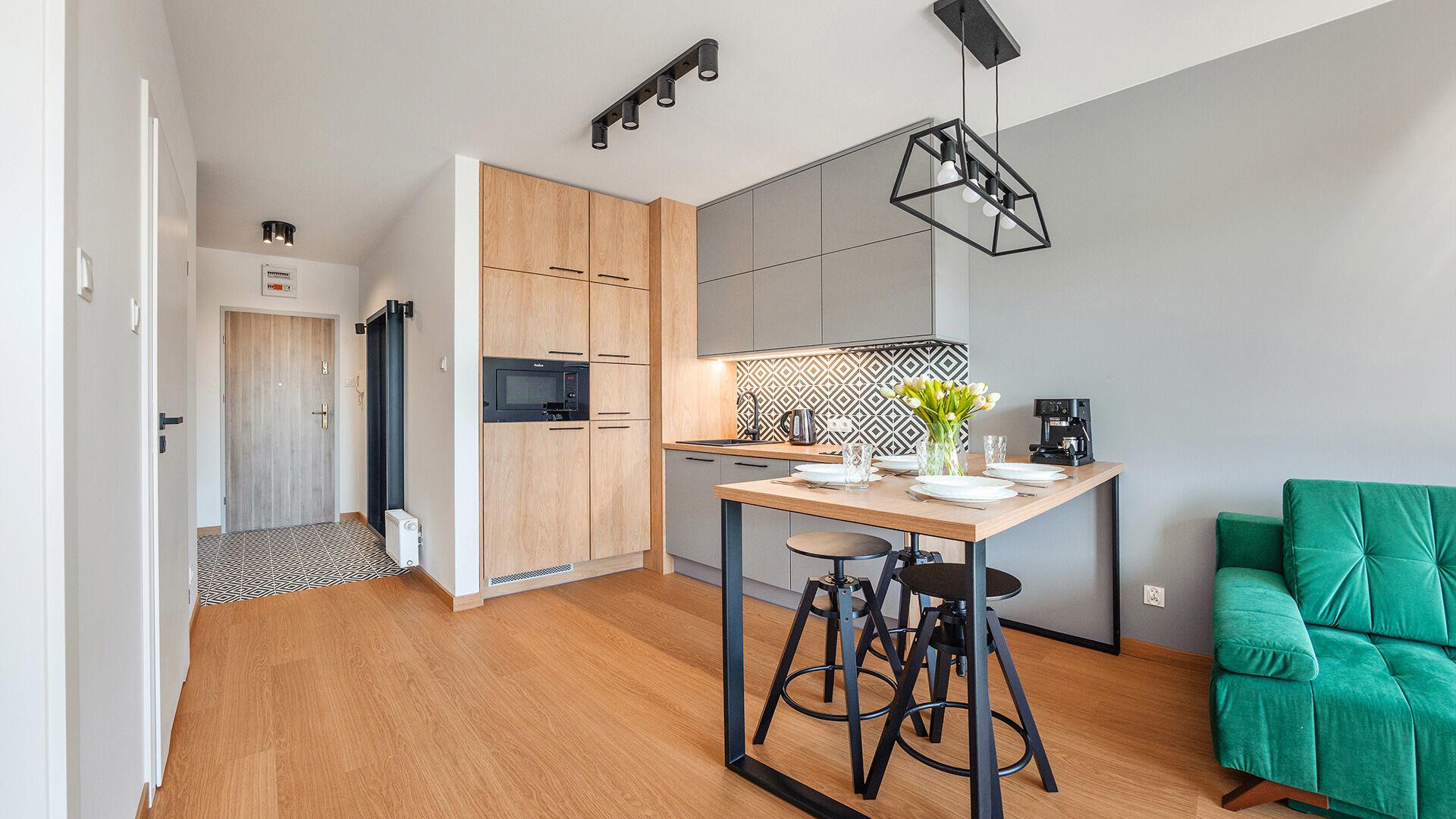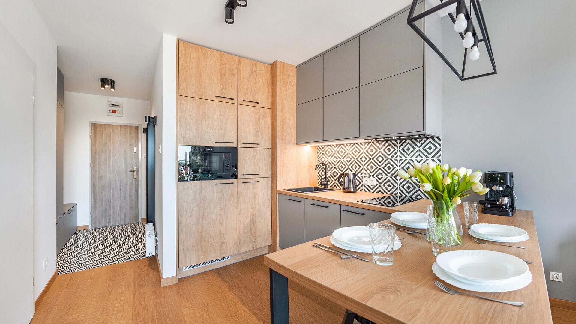 • Haustiere sind in der ausgewählten Wohnung erlaubt. Die Kosten für den Aufenthalt mit einem Haustier betragen 40 PLN pro Tag.