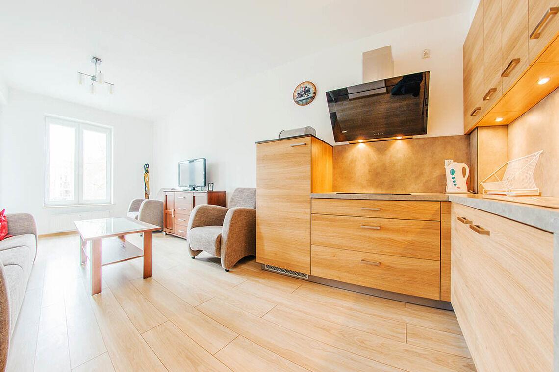 • Haustiere sind in der ausgewählten Wohnung erlaubt. Die Kosten für den Aufenthalt mit einem Haustier betragen 40 PLN pro Tag.