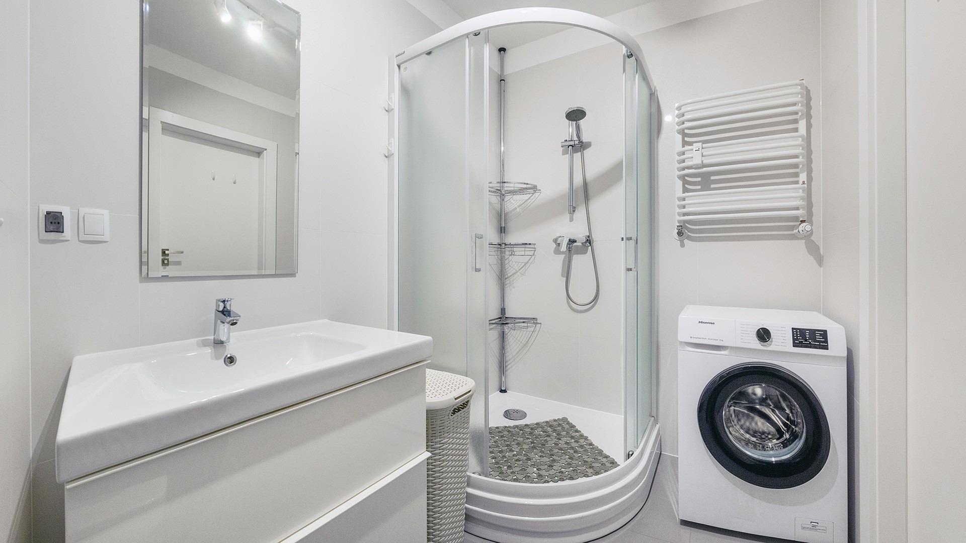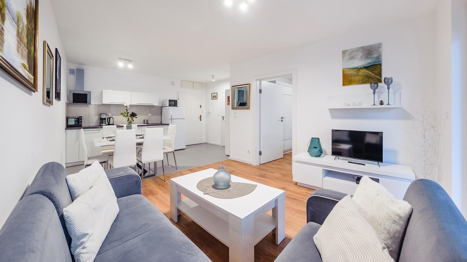 Blizej Morza ist ein moderner Apartmentkomplex im zentralen Kurviertel von Kolobrzeg, nur wenige Schritte vom Küstenpark, der Promenade, dem Strand und dem Meer entfernt. Das Gebäude verfügt über einen Aufzug mit Zugang zur Tiefgarage, ein voll ausgestattetes Fitnessstudio, einen Fahrradraum, eine Lobby sowie eine Dachterrasse mit Liegestühlen zum Entspannen. Gegenüber befindet sich ein Hotel mit Restaurant und einem Wasser-Thermal-Komplex, der gegen Aufpreis genutzt werden kann. Die Apartments sind mit frischer Bettwäsche und Handtüchern ausgestattet, und Gäste erhalten 10 % Rabatt auf Massagen, die direkt im Apartment oder vor Ort angeboten werden. Ideal für Familien, Paare und alle, die Erholung in Meeresnähe suchen.