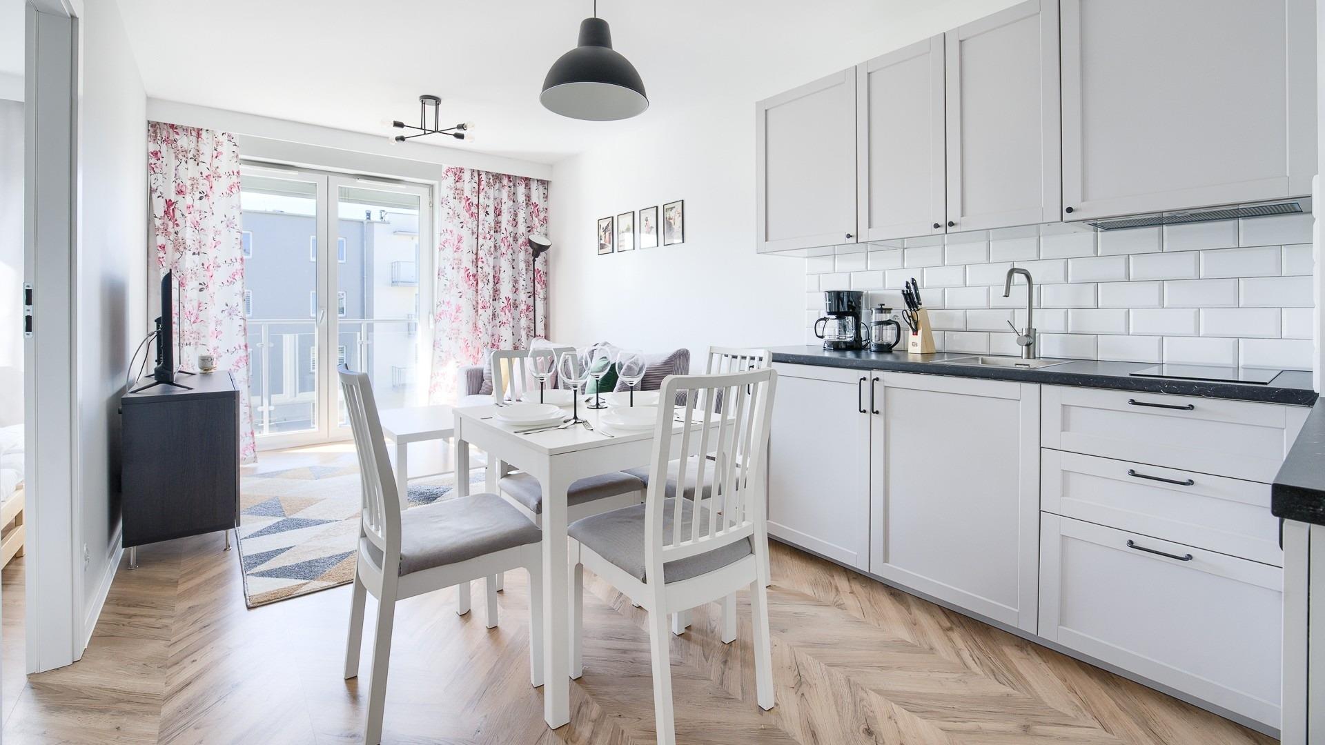 • Haustiere sind in der ausgewählten Wohnung erlaubt. Die Kosten für den Aufenthalt mit einem Haustier betragen 40 PLN pro Tag.