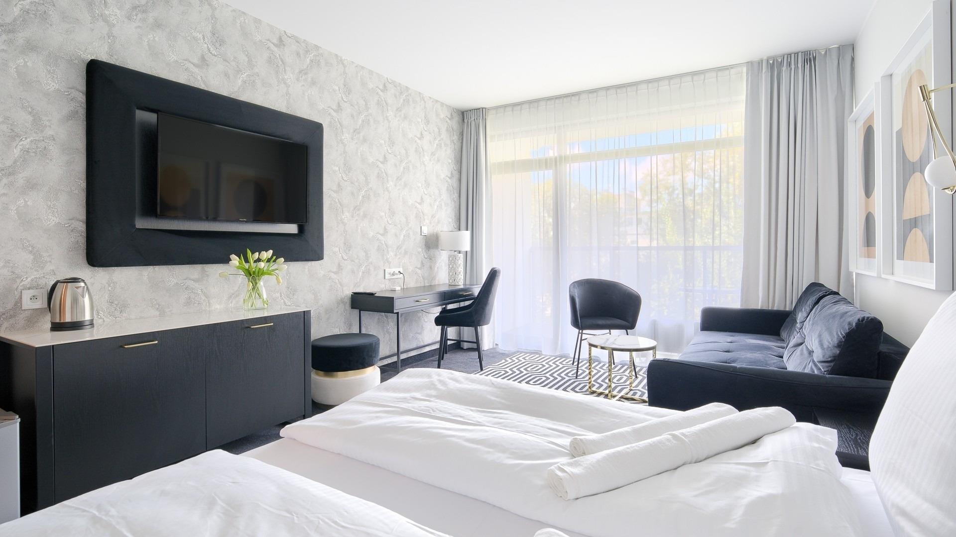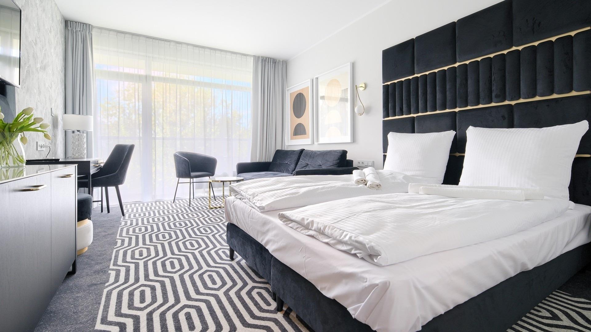 Das Solny Resort ist ein modernes 4-Sterne-Hotel in einer ruhigen, grünen Gegend von Kolobrzeg, nur wenige Schritte vom Strand und dem Amphitheater entfernt. Es bietet komfortable Apartments mit sauberer Bettwäsche und Handtüchern. Gäste können den Außenpool kostenlos, den Innenpool gegen Gebühr sowie die Sauna und Ermäßigungen auf Massagen nutzen. In der Umgebung gibt es viele Restaurants und Erholungsgebiete.