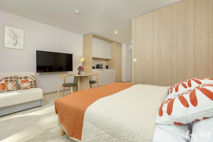 Perfekt läge, mycket nära havet, 300 m till stranden längs en stig genom skogen. Ett modernt hyreshus i ett inhägnat område, med en sommarpool och en lekplats. En mysig, trevligt inredd semesterstudio på andra våningen (det finns en hiss). Studion är ett öppet utrymme som fungerar som både vardagsrum och sovrum. Det finns ett bord, TV, en stor dubbelsäng och en utfällbar fåtölj. Öppet kök. Badrum med dusch. Det finns en stor balkong med en uppsättning trädgårdsmöbler. Det finns luftkonditionering med kyl- och värmefunktioner. Säker parkering finns tillgänglig. Den intima resorten har en sommarpool med hydromassage (öppen i juli och augusti). Solstolar omger poolen. Det finns också en attraktiv lekplats. I priset för vistelsen ingår: el- och vattenförbrukning, luftkonditionering, parkering, användning av sommarpoolen (juli - augusti), barnstol (förhandsbokning krävs). Lukecin är en liten, charmig bosättning vid havet mellan Pobierowo och Dziwnów, belägen bland en barrskog som skiljer havet från staden. Om du, när du väljer boende vid havet, letar efter en lugn plats där du aktivt kan koppla av, kommer Lukecin att vara ett bra val, du kommer säkert att uppskatta den lugn och ro som råder här. Det är ingen trängsel här även under semesterperioden. Det finns en liten utsiktsplattform på stranden. Barn kommer att bli glada över ett besök i Whale Park i närliggande Rewal (ca 10 km), med riktiga havsjättar. Stadens och hela regionens stolthet är den renoverade smalspåriga järnvägen, som låter dig åka på en charmig resa till närliggande orter (närmaste station: Trzesacz - 8,5 km).