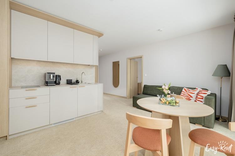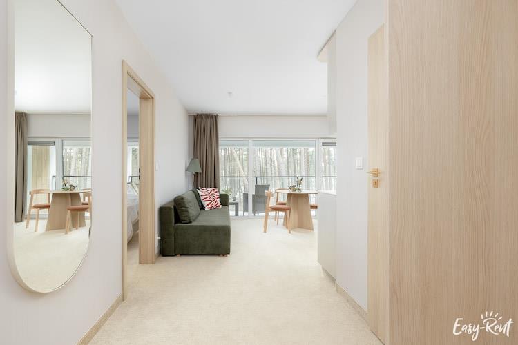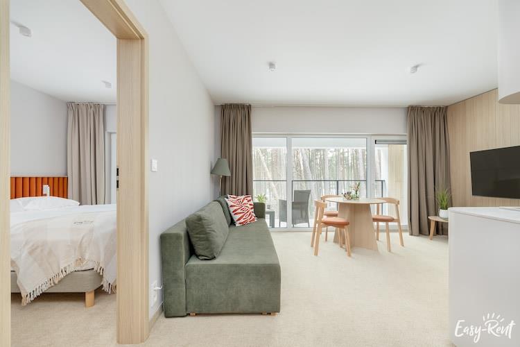 Perfekt läge, mycket nära havet, 300 m till stranden via en stig genom skogen Ett modernt hyreshus i ett inhägnat område, med en sommarpool och en lekplats. Mysig, trevligt inredd semesterlägenhet på andra våningen (det finns hiss). Det finns ett rymligt vardagsrum med en dubbel bäddsoffa, TV och bord. Vardagsrummet ligger i anslutning till köket. Det finns ett sovrum med en bekväm dubbelsäng och ett badrum med dusch (det finns en tvättmaskin). Lägenheten har en stor balkong med en uppsättning trädgårdsmöbler. Det finns luftkonditionering med kyl- och värmefunktioner. Trådlöst internet finns tillgängligt. Säker parkering på plats. Den intima resorten har en sommarpool med hydromassage (öppen i juli och augusti). Solstolar omger poolen. Det finns också en attraktiv lekplats. I priset för vistelsen ingår: el- och vattenförbrukning, luftkonditionering, parkering, internet, användning av sommarpoolen (juli - augusti), barnstol (förhandsbokning krävs). Lukecin är en liten, charmig bosättning vid havet mellan Pobierowo och Dziwnów, belägen bland en barrskog som skiljer havet från staden. Om du, när du väljer boende vid havet, letar efter en lugn plats där du aktivt kan koppla av, kommer Lukecin att vara ett bra val, du kommer säkert att uppskatta den lugn och ro som råder här. Det är ingen trängsel här även under semesterperioden. Det finns en liten utsiktsplattform på stranden. Barnen kommer att bli glada över ett besök i Whale Park i närliggande Rewal (ca 10 km), med riktiga havsjättar. Stadens och hela regionens stolthet är den renoverade smalspåriga järnvägen, som låter dig åka på en charmig resa till närliggande orter (närmaste station: Trzesacz - 8,5 km).