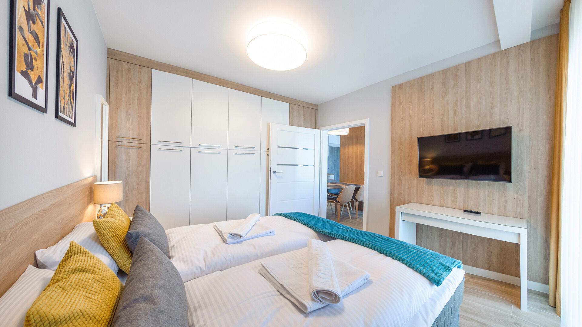 • Die Apartments sind mit Bettwäsche und Handtüchern ausgestattet.