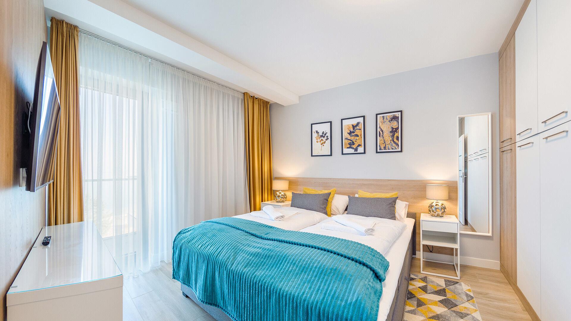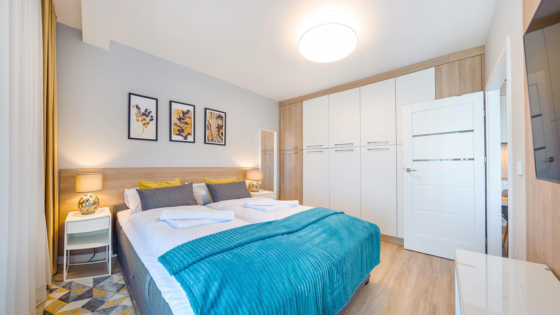 • Haustiere sind in der ausgewählten Wohnung erlaubt. Die Kosten für den Aufenthalt mit einem Haustier betragen 40 PLN pro Tag.