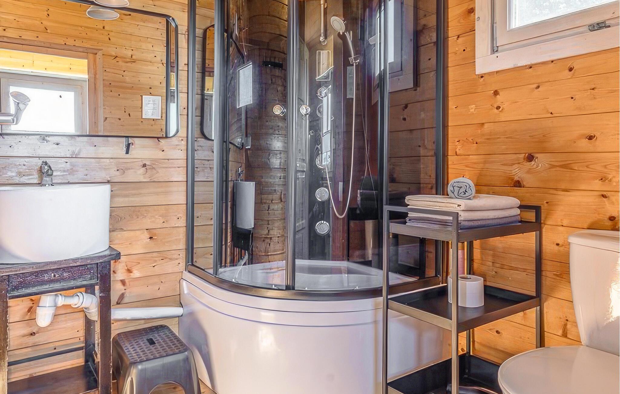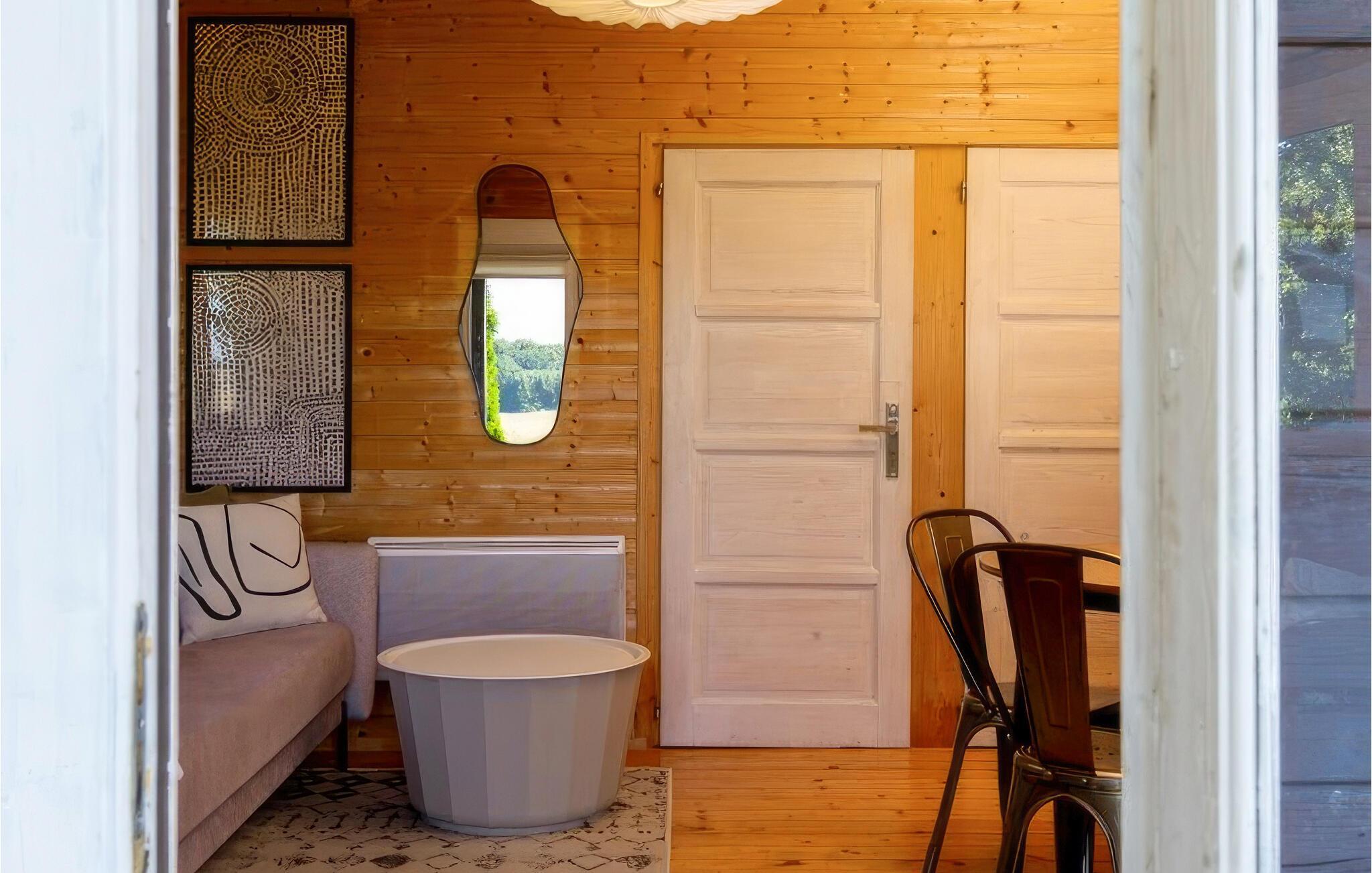 Detta mysiga semesterhus ligger inbäddat i det pittoreska landskapet i Sianów och välkomnar dig. Träväggar och bekväma, smakfulla möbler skapar en mysig atmosfär som får dig att känna dig som hemma från dag ett. Låt dig inspireras av utsikten över landskapet när du lagar mat, planera dina aktiviteter och avrunda en lång dag på landsbygden med en harmonisk spelkväll eller en god bok.