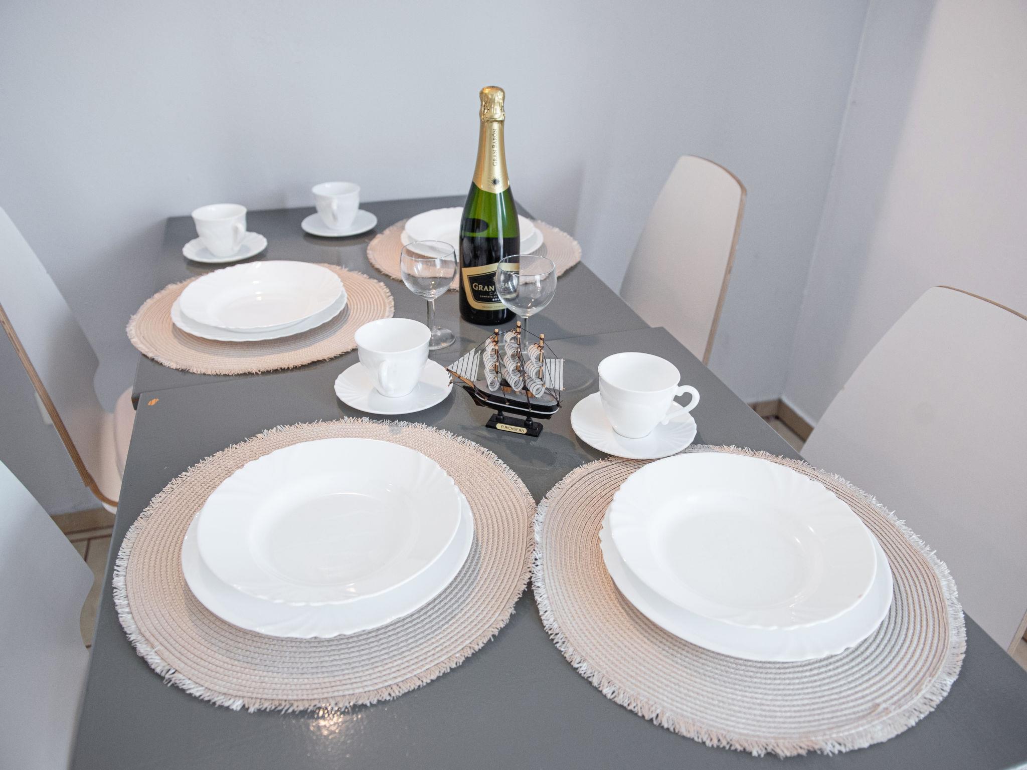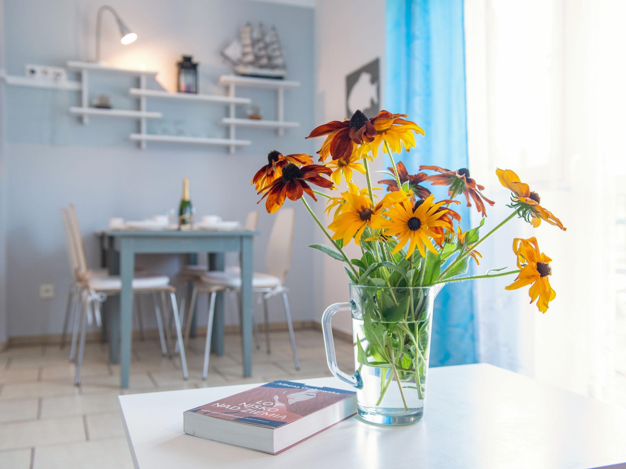2-room apartment 45 m2, on the ground floor. Lounge with 1 double sofabed and TV. 1 room with 3 beds (90 cm, length 200 cm). Open kitchen (2 hot plates, freezer) with dining nook. Shower/WC. Electric heating, gas heating. Terrace 10 m2. Balcony furniture. Facilities: hair dryer. Internet (WiFi).