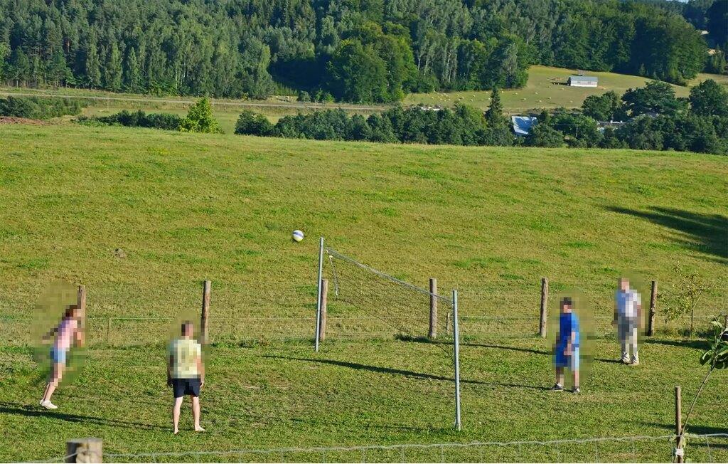 Den stora, inhägnade gemensamma tomten erbjuder vuxna och barn ett brett utbud av aktiviteter, omgiven av idyllisk landsbygd. Tävla med andra gäster på volleybollplanen och låt ditt barn ha kul med de många lekmöjligheterna. Se fram emot mysiga grillkvällar och stämningsfulla stunder vid den öppna spisen.