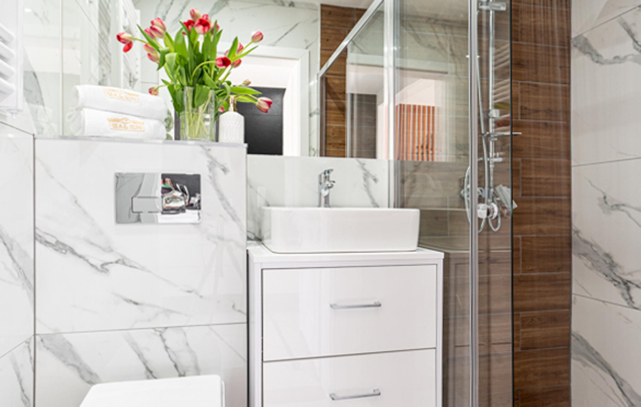 Badrum (nr. 1) - WC: Varmt och kallt vatten. Dusch