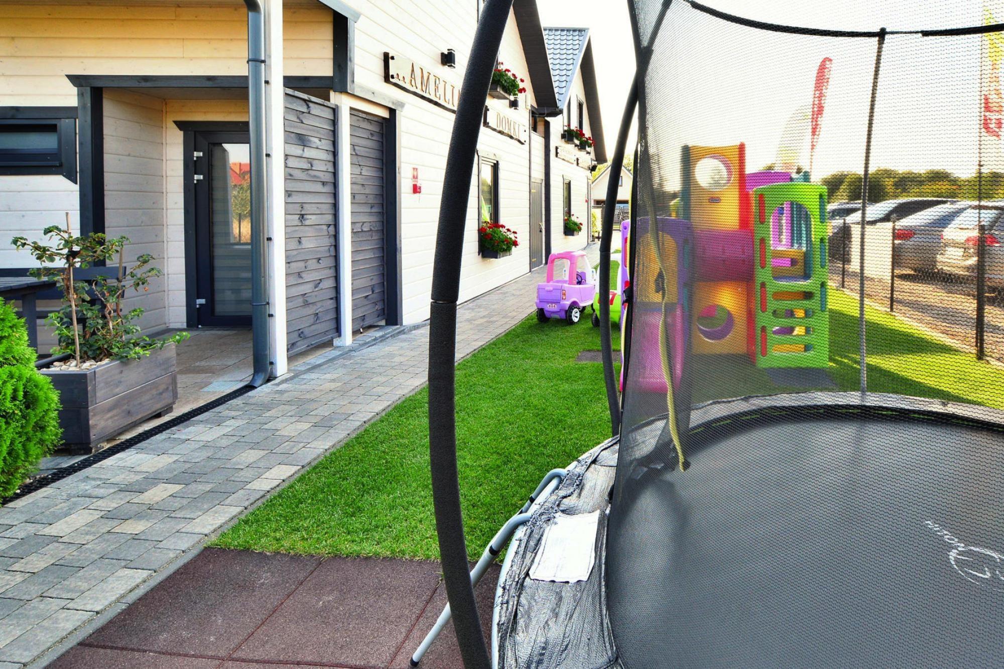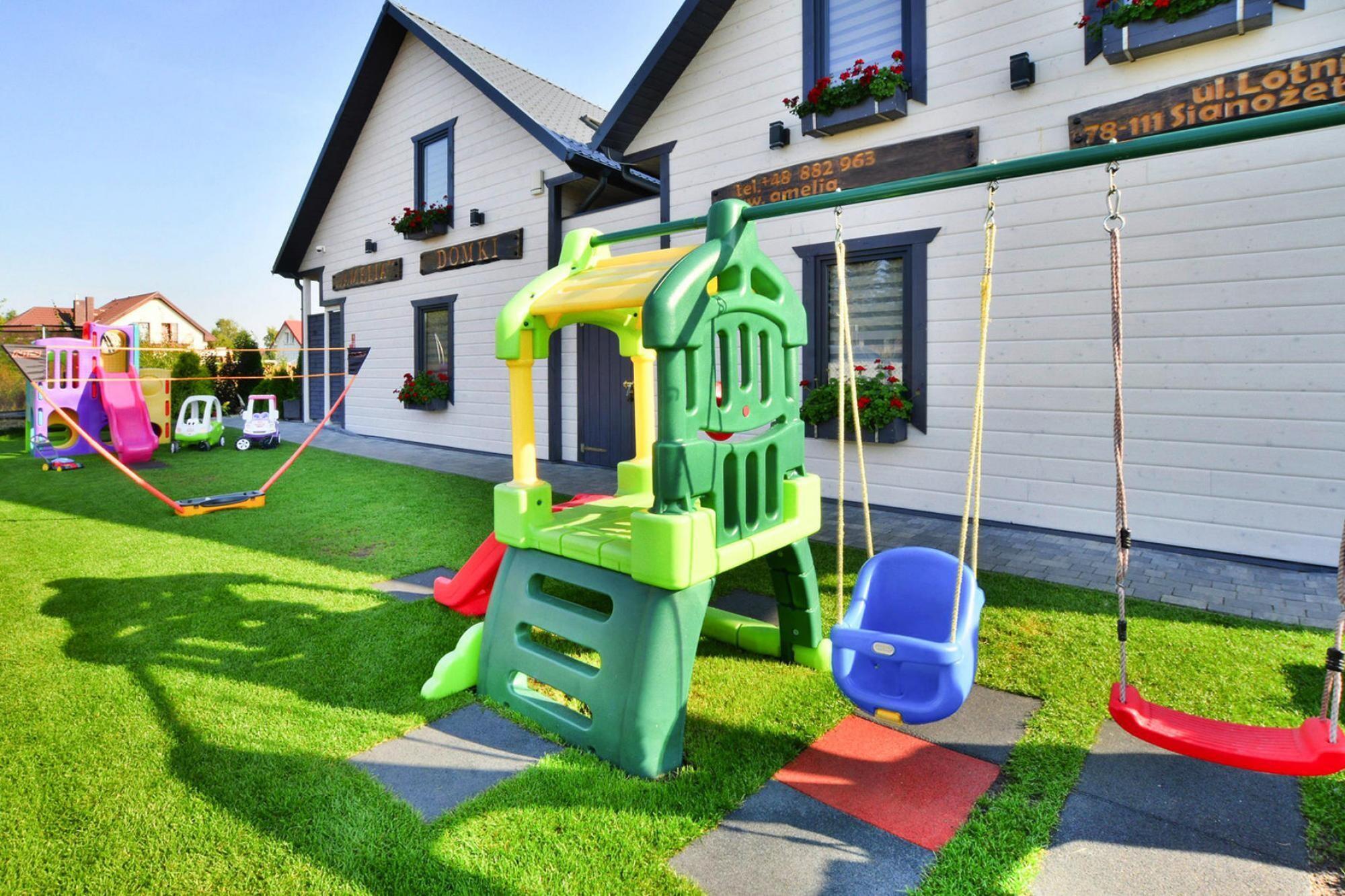En familjevänlig semesteranläggning i ett mycket lugnt område, 200 meter från stranden. Bara några steg från centrum. Bekväma tvåvåningshus med täckta terrasser. På bottenvåningen finns ett vardagsrum (TV, matbord, bäddsoffa för två personer), ett fullt utrustat kök och ett badrum med dusch (inklusive tvättmaskin). På första våningen finns två trebäddsrum. Terrassen är utrustad med trädgårdsmöbler och grillmöjligheter. Elvärme finns tillgängligt. Trådlöst internet finns tillgängligt. Den välskötta och inhägnade tomten inkluderar en attraktiv lekplats och ett välutrustat lekrum. Cykeluthyrning, bordtennis och fotbollsspel finns tillgängliga. Bastu och jacuzzi finns tillgängliga mot en extra avgift. Säker parkering finns tillgänglig (en plats per stuga ingår i priset; ytterligare en parkeringsplats finns tillgänglig mot en extra kostnad). I priset ingår: sängkläder, internet och parkering (en plats per stuga). Spjälsäng och barnstol finns tillgängliga på begäran (bokning krävs). Sianozety är en liten semesterby belägen cirka 10 km från Kolobrzeg, i omedelbar närhet av en annan badort, Ustronie Morskie. Sianozety ligger alldeles intill en bred strand. Den gyllene sanden och den lätta sluttningen ner i havet uppmuntrar semesterfirare att sola och bada. Grannstaden Ustronie Morskie har också en 100 meter lång pir. Den internationella cykelleden R-10 går genom Sianozety. Den löper längs kusten och erbjuder fantastisk utsikt över stränderna, det klara havet och charmiga torvmossarna. Härifrån är cykling ett enkelt och trevligt sätt att nå närliggande Ustronie Morskie, såväl som den större staden Kolobrzeg.