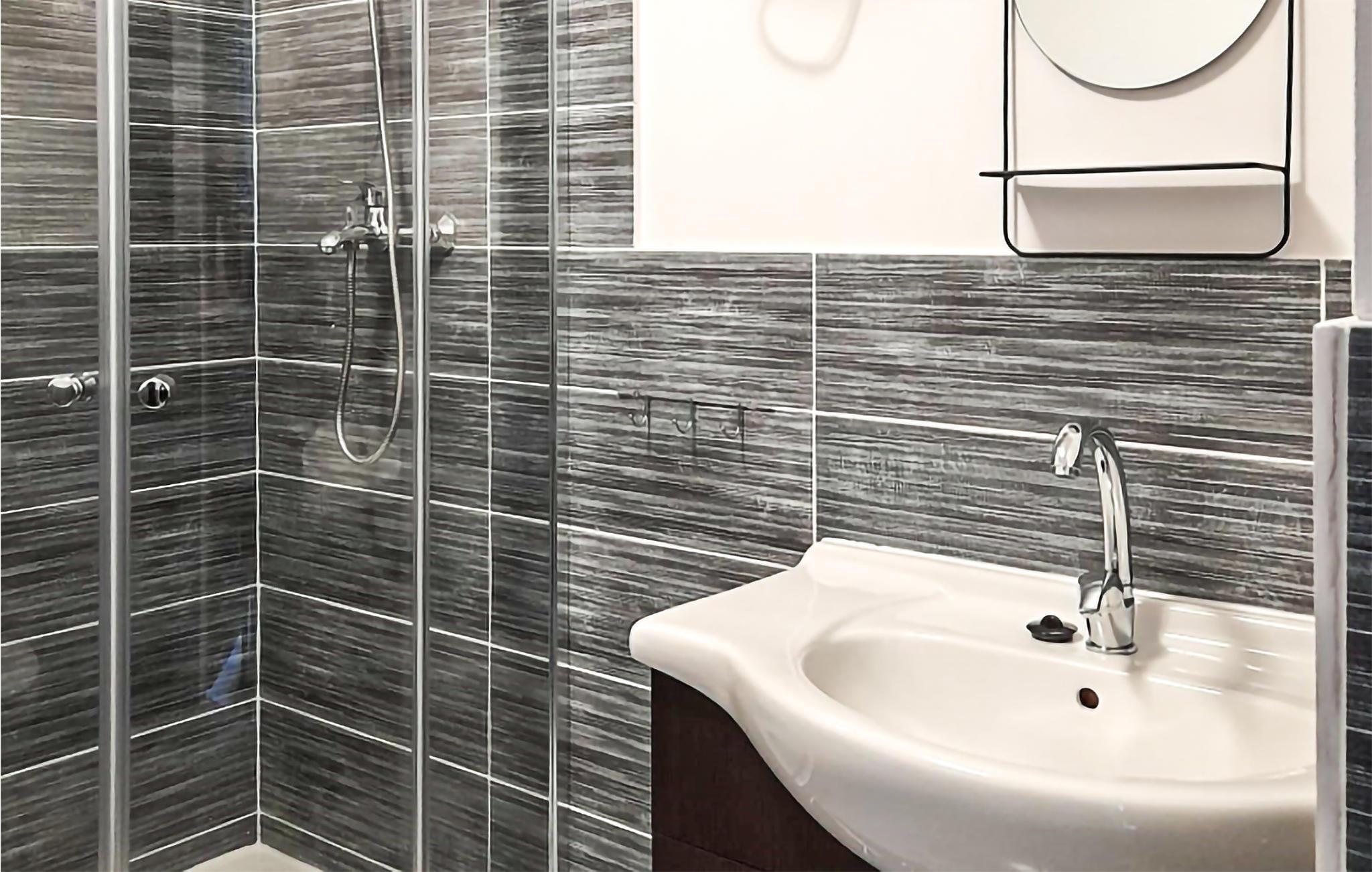 Badrum (nr. 1) - WC: Varmt och kallt vatten. Dusch