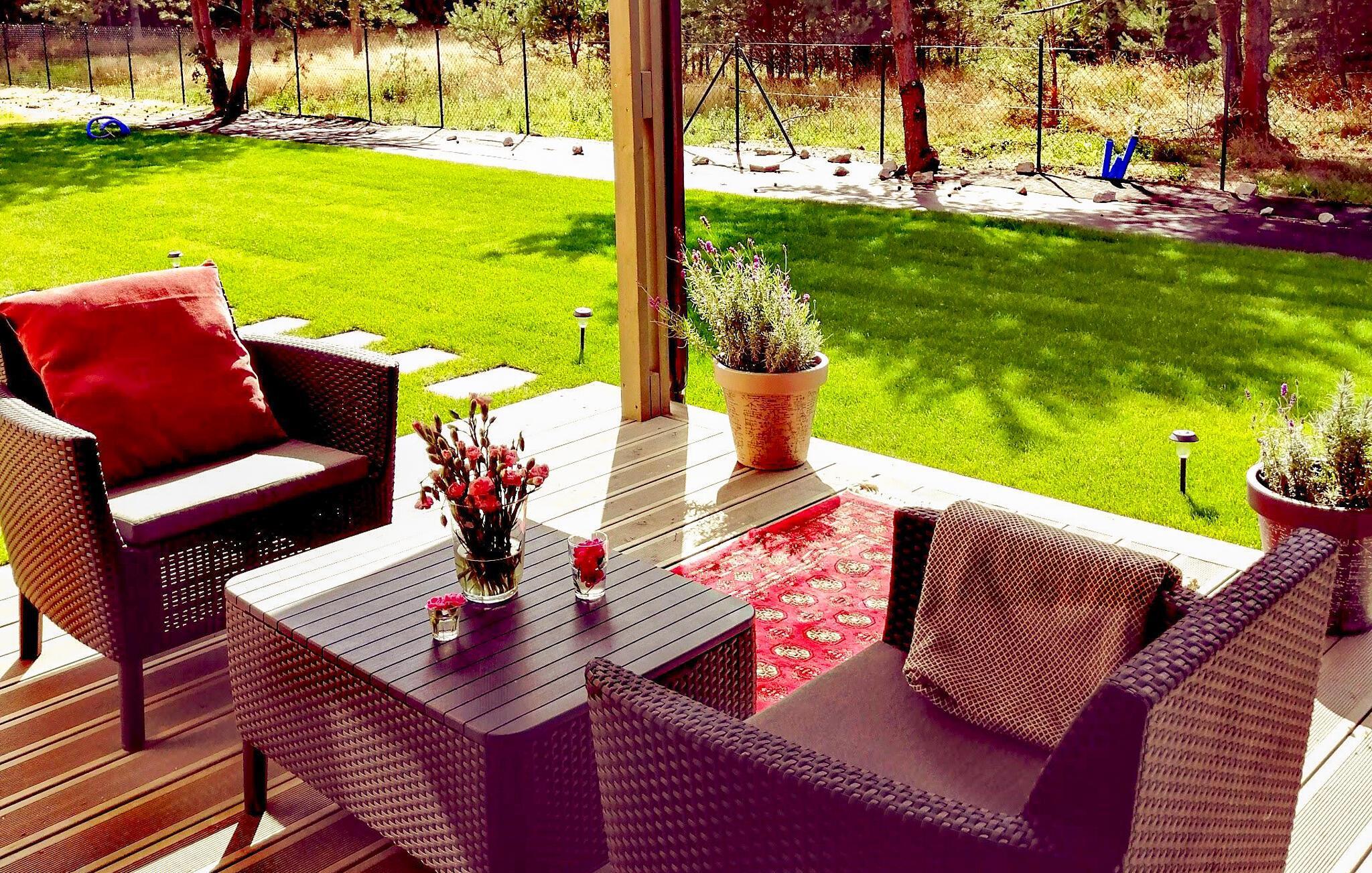 Använd det rymliga utomhusområdet för avkopplande timmar utomhus. Den täckta terrassen med bekväma loungemöbler är den perfekta platsen för att njuta av naturen. Drick ditt morgonkaffe i den friska luften eller avrunda kvällen med ett glas vin medan du njuter av de lugna omgivningarna.