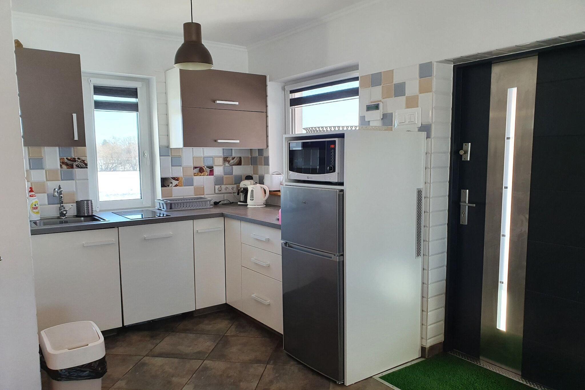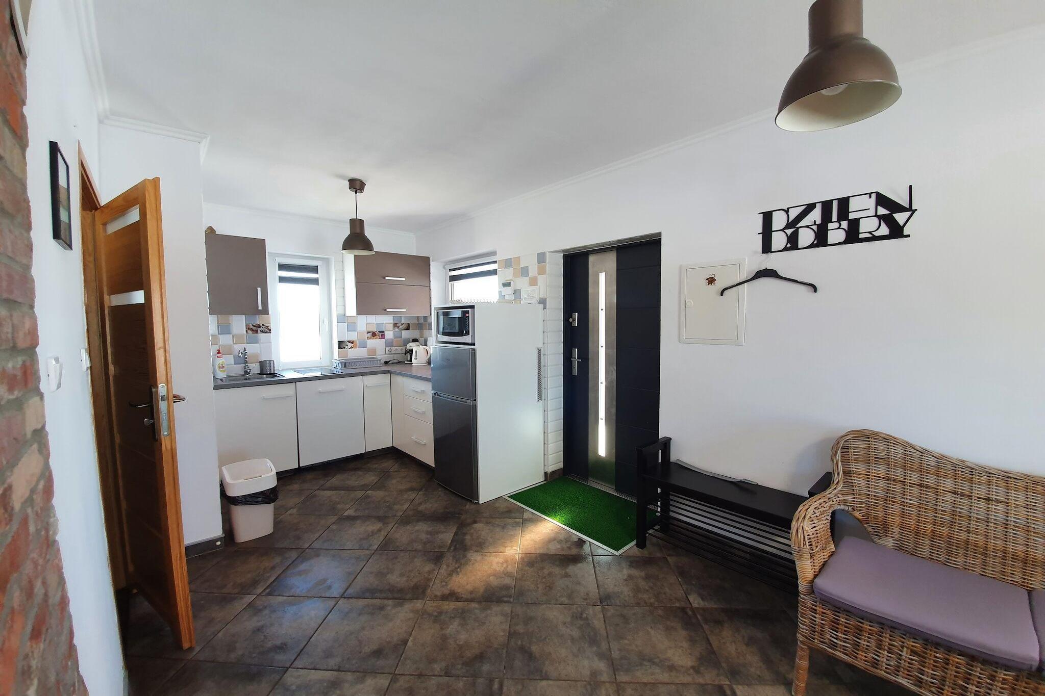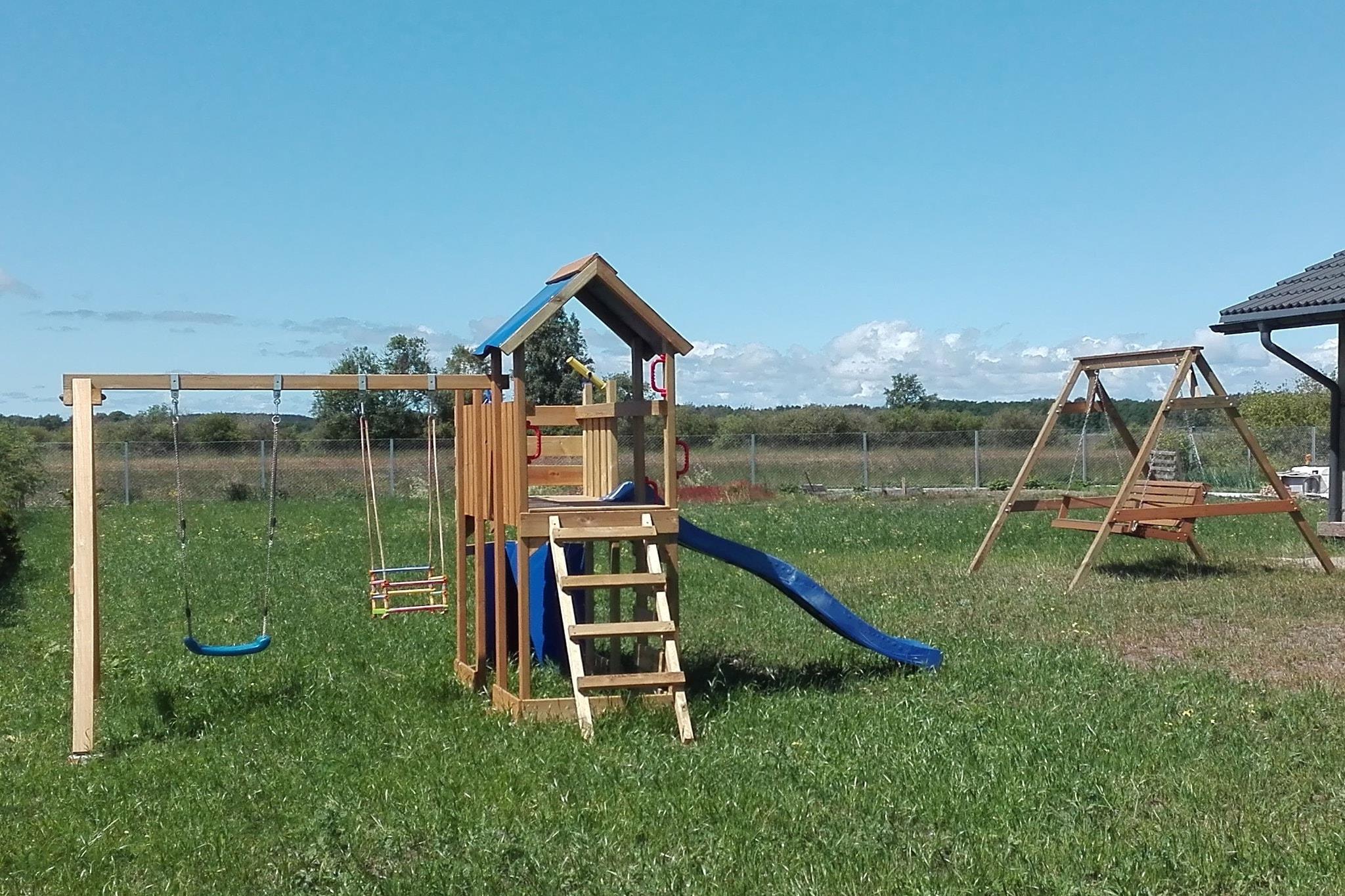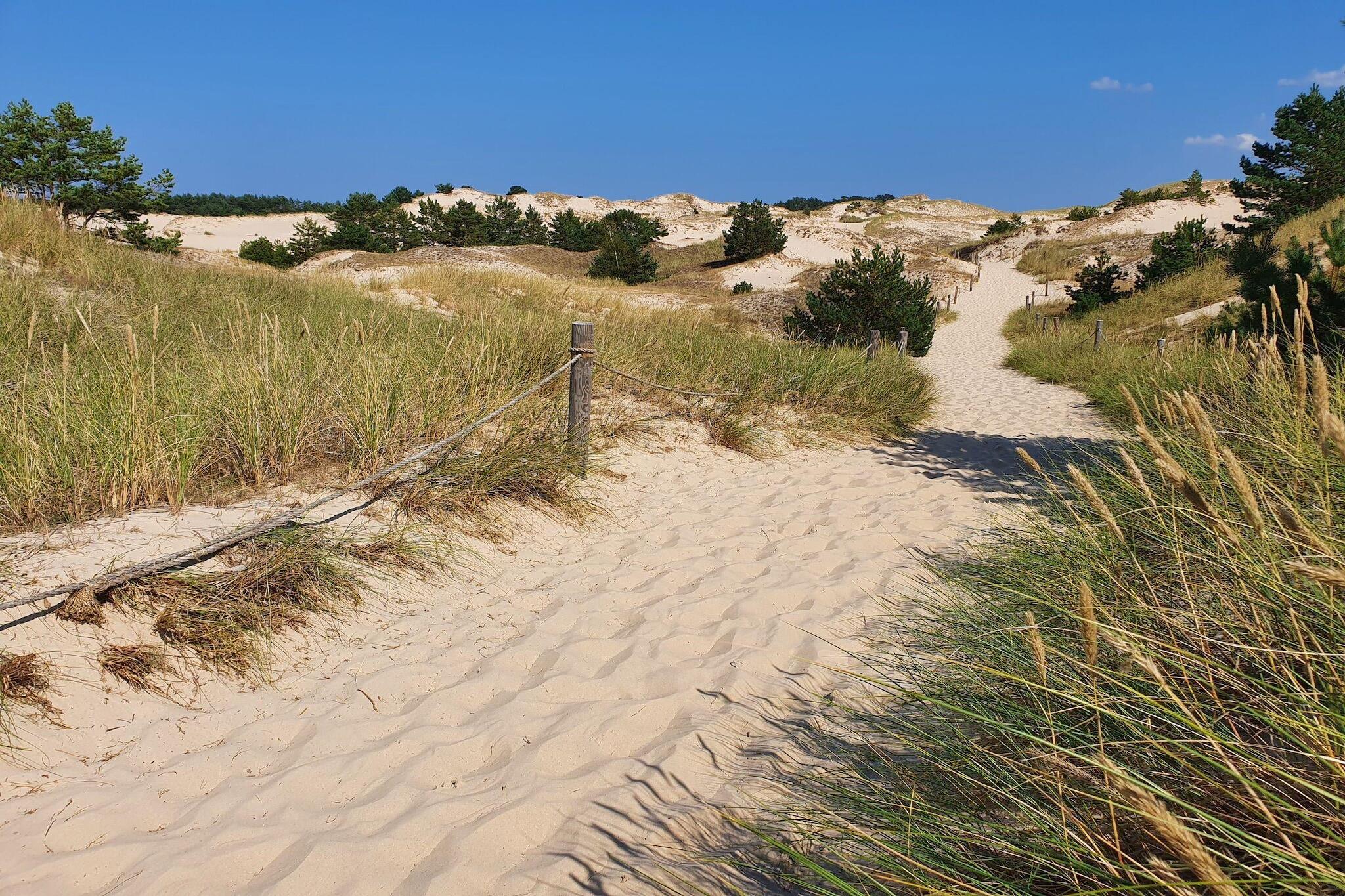 Detta bekväma semesterhus i två våningar med täckt terrass ligger på en privat, inhägnad tomt (1400 m²). Tomten är omgiven av den frodiga grönskan i nationalparken Slowinski. Närmaste strand ligger 5 km bort, och sjön Dolgie Wielkie ligger 2 km bort. Huset har två våningar. På bottenvåningen finns ett rymligt vardagsrum (öppen spis, TV, matbord, två bäddsoffor), ett välutrustat kök och ett badrum med dusch (inklusive tvättmaskin). Badrummet har en infraröd bastu som gästerna kan använda utan begränsningar. På första våningen finns två separata sovrum. Den stora terrassen har trädgårdsmöbler och grillmöjligheter. Solstolar finns. Elvärme och öppen spis finns. Wi-Fi finns tillgängligt. Värden tillåter husdjur (max 3; mot en extra avgift). Den välskötta, inhägnade tomten inkluderar en lekplats och säker parkering. I priset ingår: sängkläder, handdukar, el, vatten, ved, infraröd bastu, slutstädning, internet och parkering. För de små: spjälsäng, barnstol, badkar och potta. Semesterhuset ligger i buffertzonen i Slowinski nationalpark, ett område som utsetts till UNESCO-biosfärreservat. Närliggande attraktioner inkluderar vandrings- och cykelleder, kajakpaddling, ridning och fiske. Den breda strandpromenaden, 5 km från huset, är öde även under högsommarsäsongen. Den är inte trång, vilket garanterar en lugn och avkopplande vistelse.