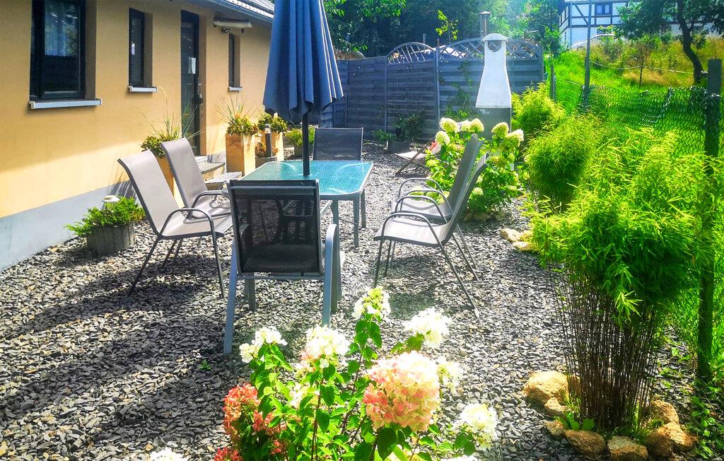 Njut av din vistelse i detta charmiga semesterhus, som erbjuder dig en lyckad kombination av mysighet, lugn och ett brett utbud av fritidsaktiviteter. Huset ligger mitt i ett mjukt landskap och inbjuder dig att ta en paus i en trevlig atmosfär. Känn dig som hemma i den kärleksfullt designade interiören, som imponerar med sina antika sittmöbler, lekfulla dekorationer och mysiga känsla. Samlas för måltider vid matbordet och använd det praktiska köket för att förbereda dina favoriträtter. Med sina olika sittgrupper erbjuder vardagsrummet gott om platser att dra sig tillbaka till för att läsa, spela spel eller titta på TV.