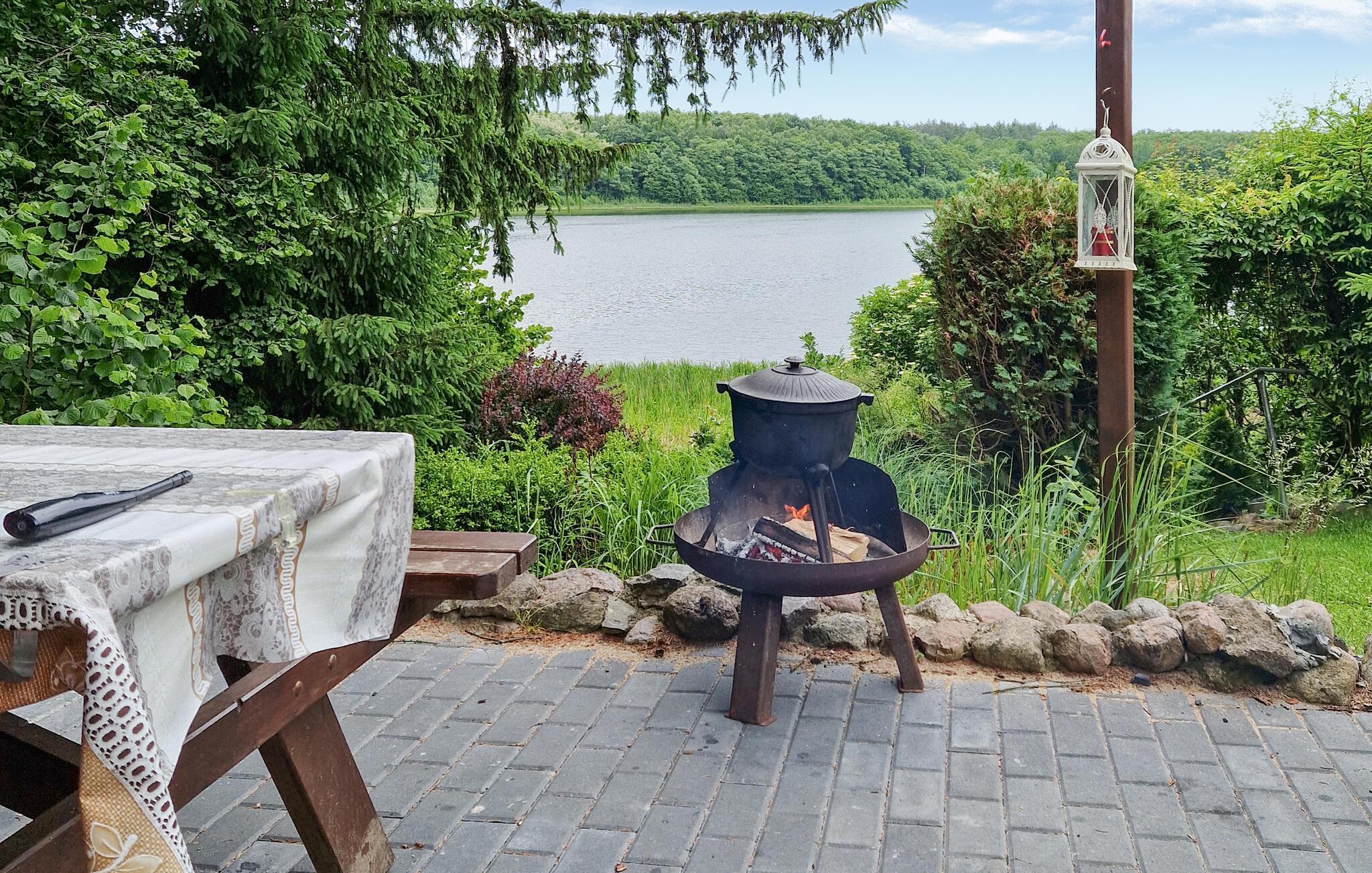 Upplev avkopplande dagar i harmoni med naturen i en vacker skog i detta idylliskt belägna semesterhus med sjöutsikt.
