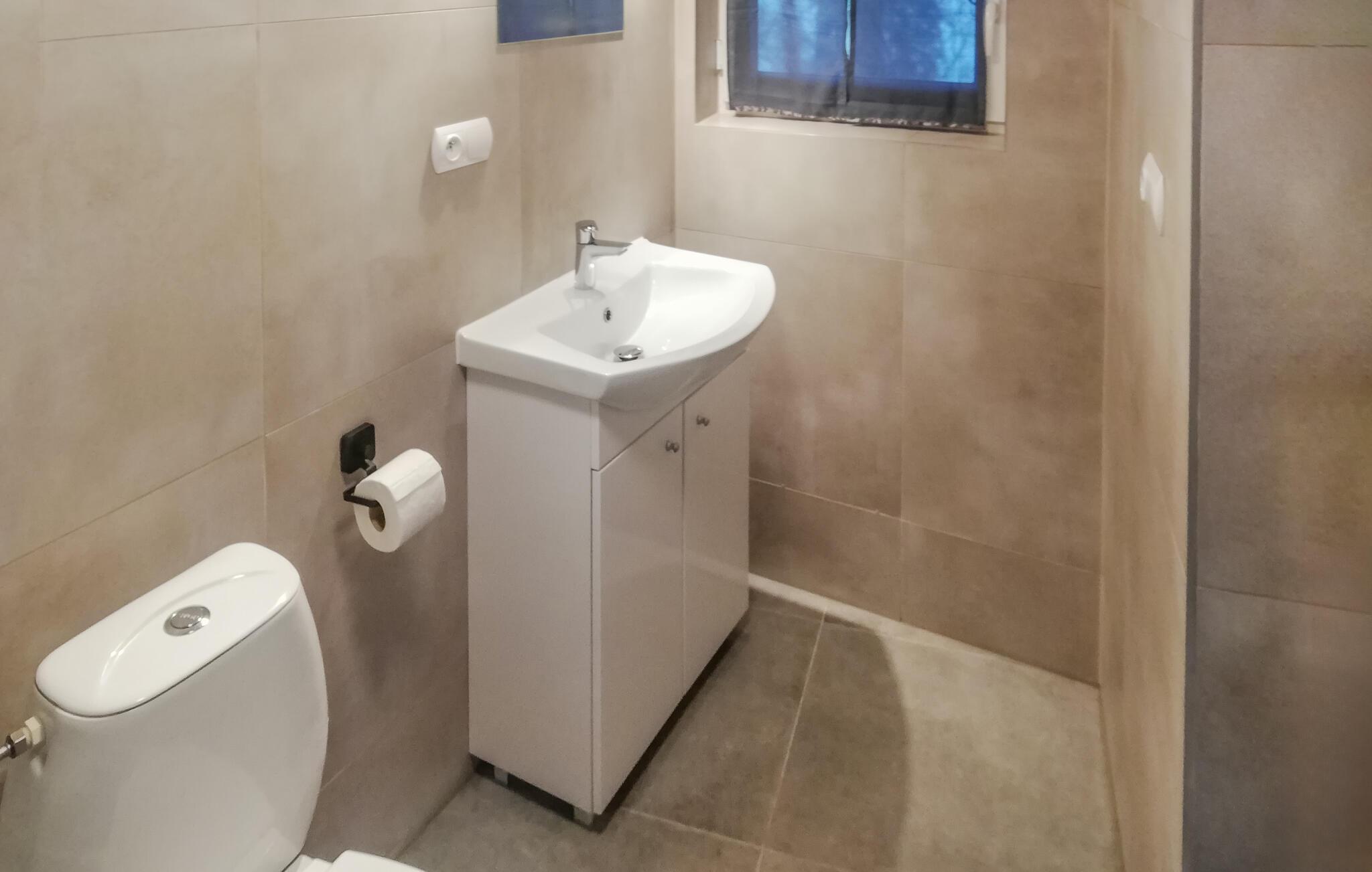 Badrum (nr. 2) - WC: Varmt och kallt vatten. Dusch