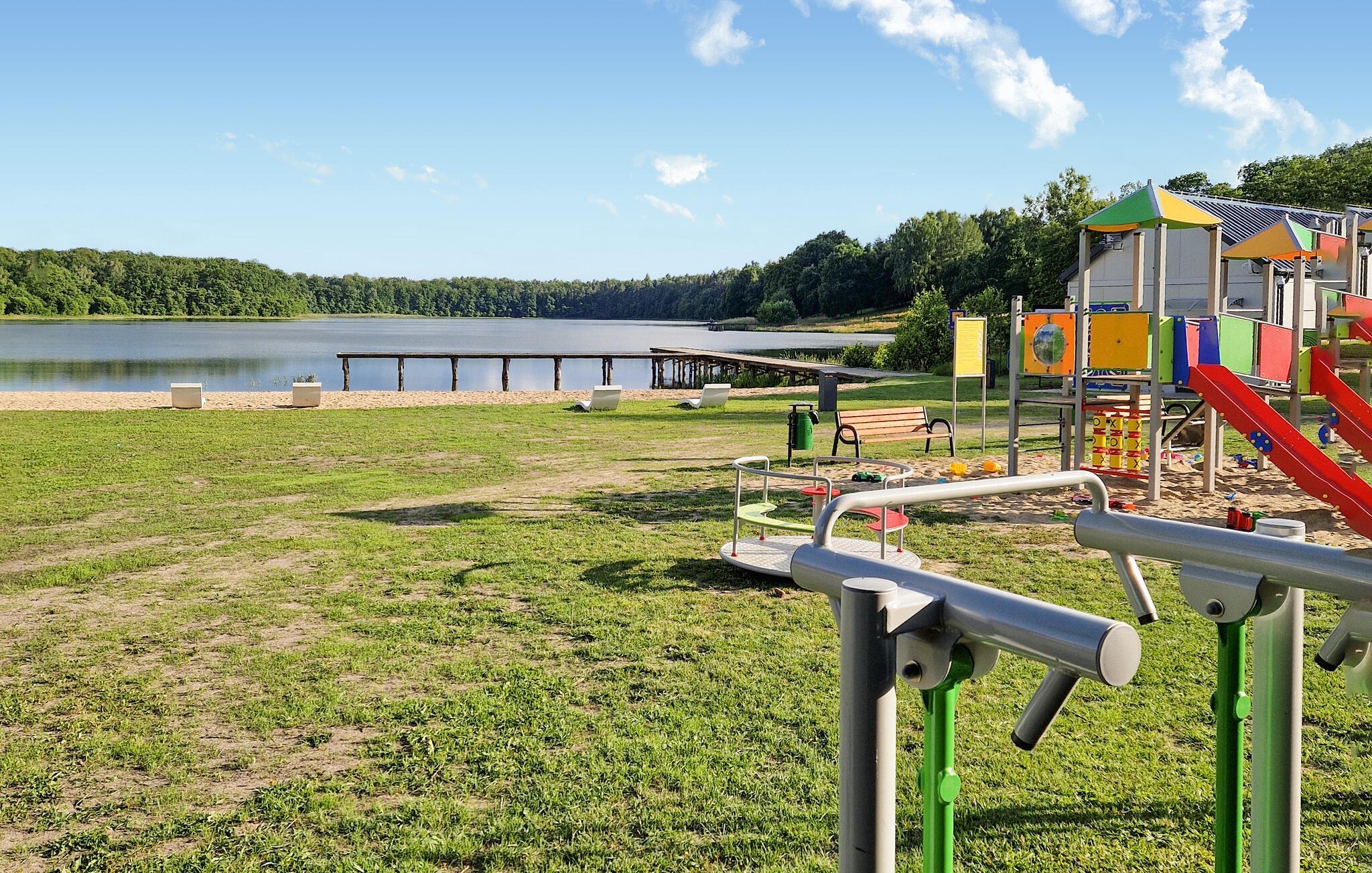 Njut av utsikten över den lugna sjön medan du äter frukost på terrassen. Fräscha upp dig i sjön och upplev den fridfulla atmosfären när du fiskar, vid eldstaden eller under en stämningsfull grillkväll i det fria. Cykla eller vandra genom Drawski National Park, besök den charmiga staden Zocieniec med sitt slott och mysiga kaféer eller utforska historiska Czaplinek med sin medeltida arkitektur och regionala marknader.