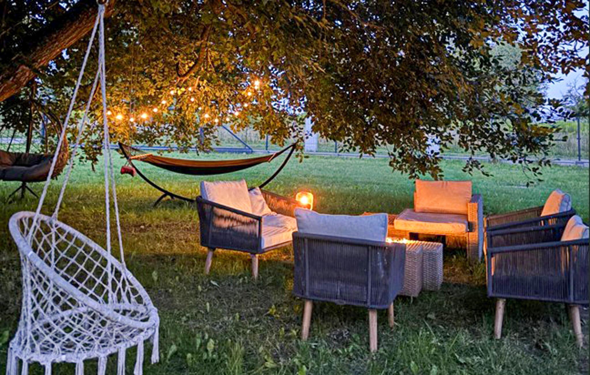 Gå ut på solterrassen och varva ner. Sitt i loungemöblerna under de skuggande träden eller dröj kvar på den lilla bryggan med en mysig bänk precis vid vattnet. På kvällen skapar eldstaden i trädgården en särskilt mysig atmosfär.