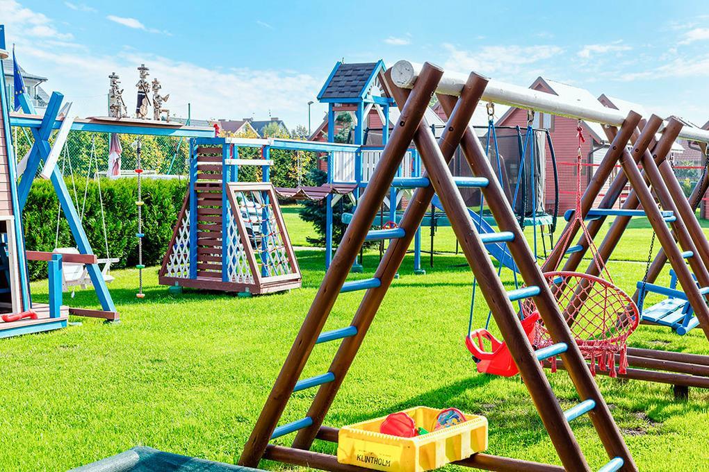 Haus: Sehr gepflegte Ferienhausanlage mit 18 schönen Holzchalets auf einem weitläufigen Grundstück. 12 Holzchalets für bis zu 4 Personen (PL 050.024), 6 Holzchalets für bis zu 7 Personen (PL 050.025). In der Anlage: Rezeption, Kinderspielplatz mit Schaukeln, Rutsche, Klettergerüst, Sandkasten, Trampolin, Volleyball-, Basketball-, Fußballfeld, Fahrradverleih (im Preis inklusiv, nach Verfügbarkeit). Gemeinschaftsraum mit TV, Kicker, Tischtennisplatte und Sitzmöglichkeiten.