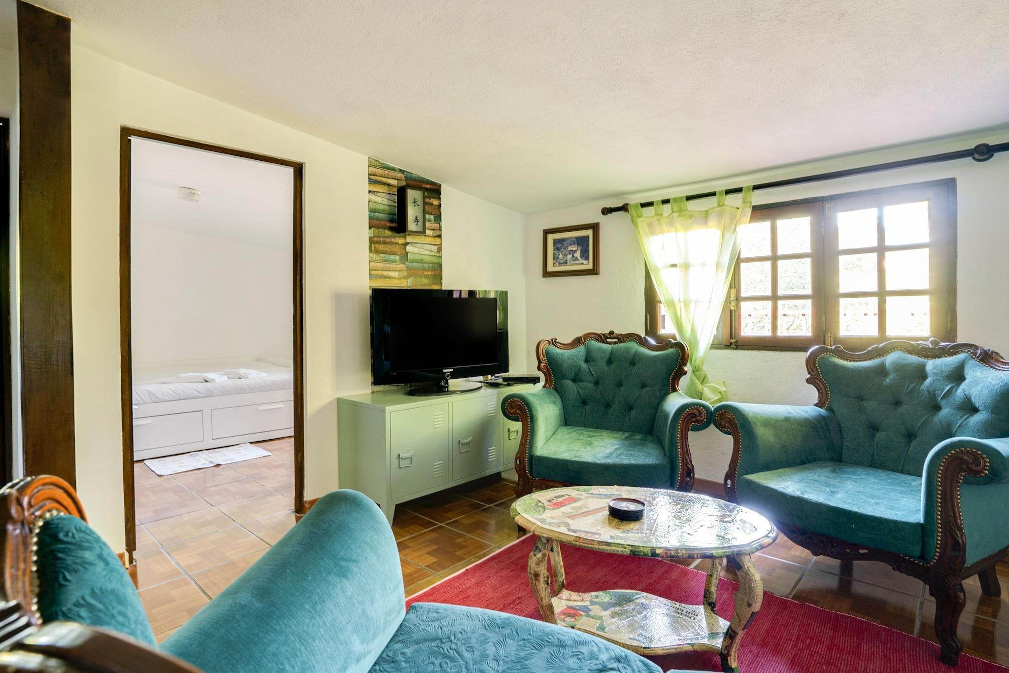 Inbäddad i Penafiels lugna skog, erbjuder denna charmiga stuga med 5 sovrum en fridfull tillflyktsort för upp till 10 gäster. Perfekt för stora familjer eller grupper, hemmet har en gemensam pool, privata terrasser och en mysig interiör designad för komfort och anslutning. Omgiven av skogsstigar och bara 800 meter från Abragãos centrum, är läget perfekt för naturvandringar, shopping och provsmakning av lokala rätter. En naturskön sjö ligger 5 km bort, perfekt för en solig picknick eller en lat eftermiddag vid vattnet. Inuti är stugan smakfullt inredd och har ett modulkök med spis, kaffebryggare och ugn. Vardagsrummet inbjuder dig att varva ner med internationella TV-kanaler, medan matsalen med bar ger en touch av rustik charm. Utomhus kan du njuta av en gemensam grill och trädgårdsmöbler på din privata terrass. Ett husdjur är välkomna gratis, och Portos flygplats ligger bara 60 km bort.