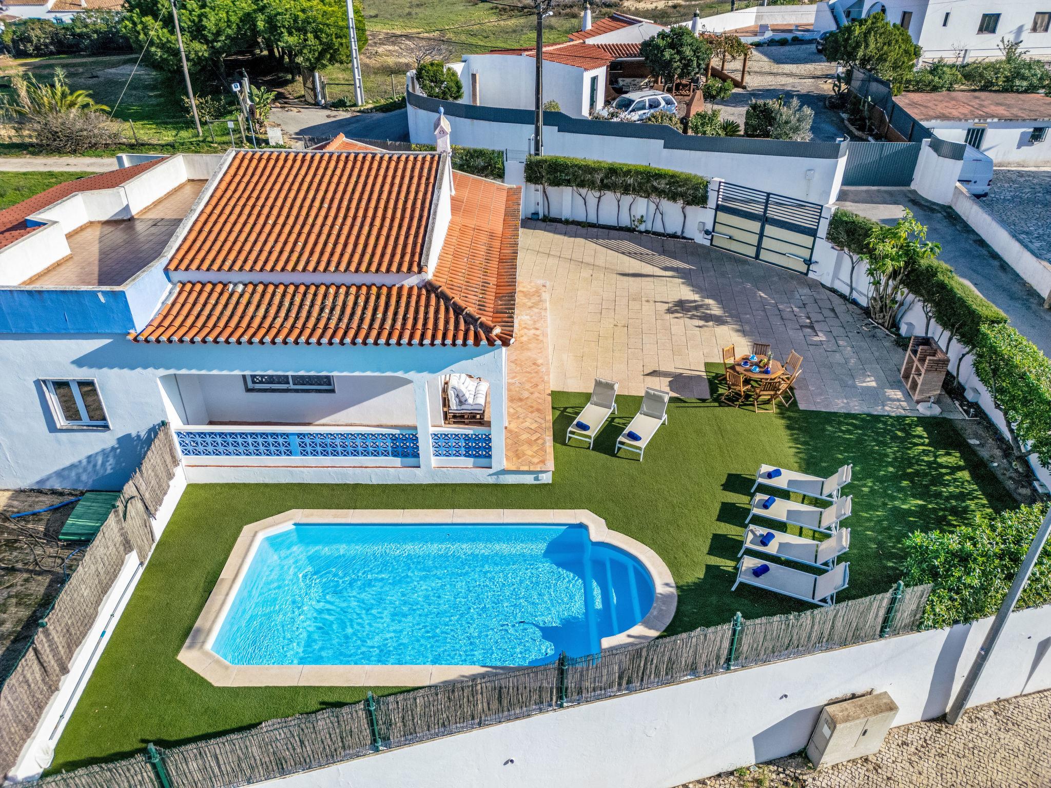 Very cosy house "Antonica", detached, renovated in 2023. Outside the resort, 6.5 km from the centre of Albufeira, residential area (villas), 1.6 km from the sea. Private: swimming pool (4 x 8 m, depth 85 - 185 cm, seasonal availability: 01.Jan. - 31.Dec.). Terrace, garden furniture, barbecue. In the house: WiFi, washing machine. Parking at the house. Grocery 500 m, supermarket 900 m, shopping centre 8.4 km, restaurant 110 m, bar 350 m, bakery 900 m, café 350 m, sandy beach "Praia do Evaristo" 1.6 km. Marina 3 km, golf course (18 hole) 4.1 km, surf school 2.1 km, tennis 10.1 km, minigolf 7.1 km, riding stable 4.1 km, children's playground 5 km. Nearby attractions: Zoomarine 7.5 km, Aqualand 10.1 km, Krazy World 14.1 km, Museu Municipal de Arqueologia 5.1 km, Torre do Relógio de Albufeira 5.1 km, Miradouro do Pau da Bandeira 3.1 km. Hiking paths: Lagoa dos Salgados 12.3 km. Please note: car recommended. Loading and unloading of baggage is possible at the holiday house.