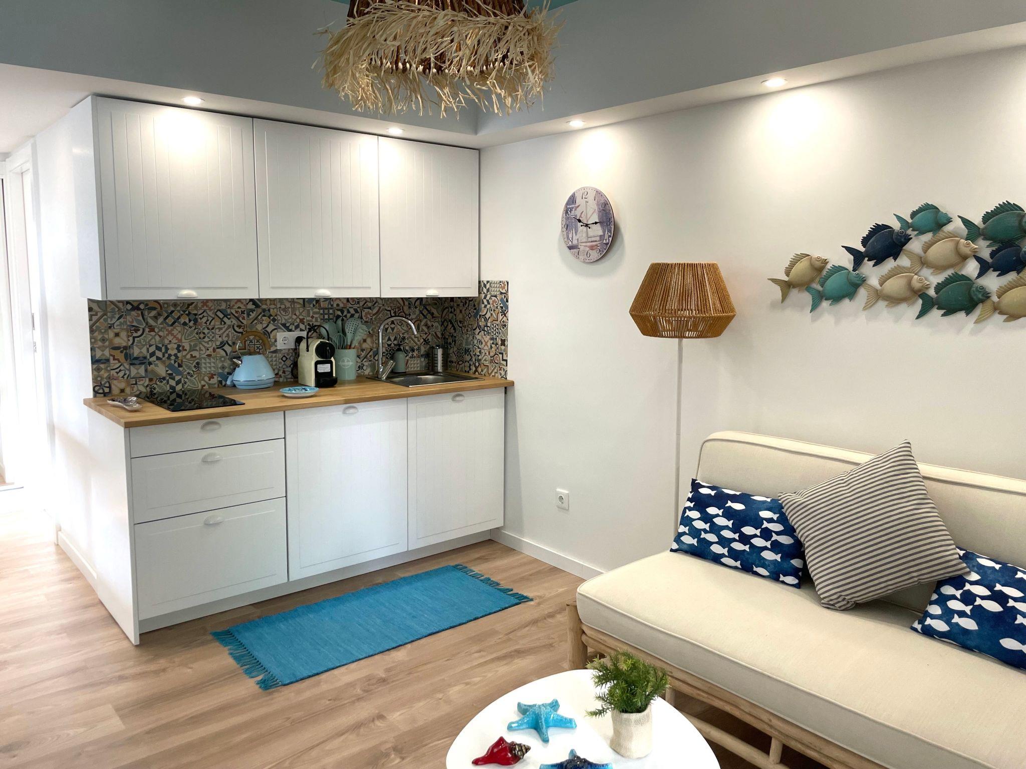 The brand new, fully furnished apartment (studio) is a modern design in a minimalist style to create a positive and relaxing atmosphere for each guest. Focusing on your comfort, the 31 m² large apartment is an excellent fit to accommodate 2 people. The configuration of the apartment is as follows: cozy sleeping area with a full-size bed, wardrobe, and bedside tables; a living zone with a Smart TV Panasonic LED - 55’’ (YouTube, Netflix, and 160 satellite channels free for our guests); a bathroom with a shower and washing machine; a fully equipped kitchen, and a sunny panoramic terrace with a dining area.