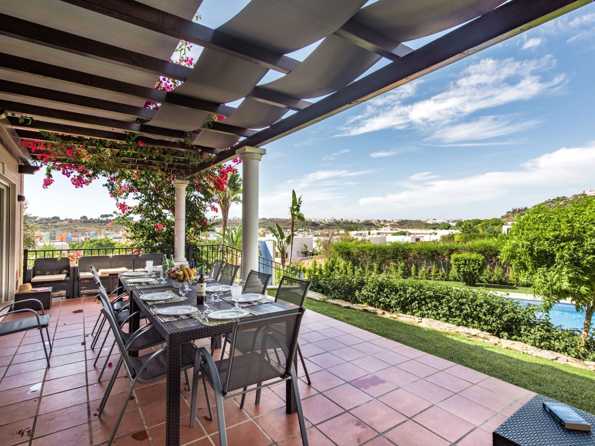 Very beautiful, cosy villa "Amendoeiras", 2 storeys. 1.9 km from the sea. Private: swimming pool angular, heated (4 x 8 m, depth 90 - 200 cm, seasonal availability: 01.Jan. - 31.Dec.). Outdoor shower, table tennis, patio, terrace, garden furniture, barbecue. In the house: WiFi, playroom, air conditioning, washing machine. Single garage at the house. Shop 2 km, grocery 1.3 km, supermarket 1.3 km, shopping centre 4.4 km, restaurant 1 km, bar 1.6 km, bakery 1.3 km, café 1.3 km, bicycle rental 2.2 km, bus stop 1.3 km, railway station 8 km, sandy beach "Praia do Peneco" 1.9 km, diving center 2 km. Sports harbour 2 km, marina 2 km, golf course (18 hole) 6.7 km, surf school 4.6 km, sailing school 16.2 km, minigolf 5.1 km, riding stable 6.4 km, children's playground 4.4 km, fishing possibilities 2.2 km. Nearby attractions: Adventure Mini Golfe Park 5.1 km, Zoomarine 9.4 km, Aqualand 13.8 km, Krazy World 16.1 km, Sand City 18 km, Faro Airport 43.7 km. Well-known lakes can easily be reached: Lagoa dos Salgados 9.5 km. Please note: Loading and unloading of baggage is possible at the holiday house. Young groups under 25 y.o. will be charged an extra deposit per person on spot. The pool heating service (20ºC-22ºC) must be informed to the KH one week before of your arrival paid on spot. After 7 nights extra 50€ per day for pool heating.
