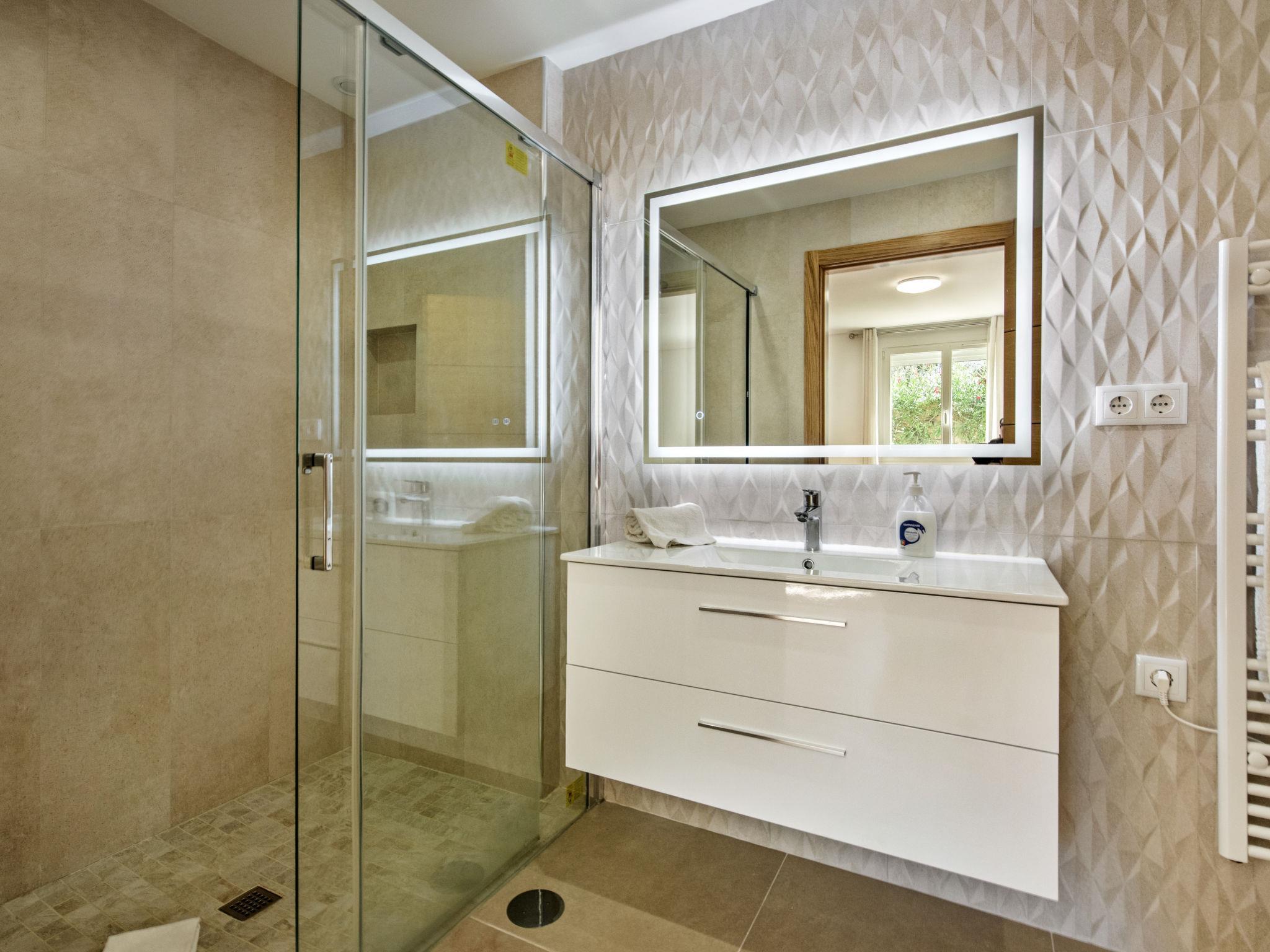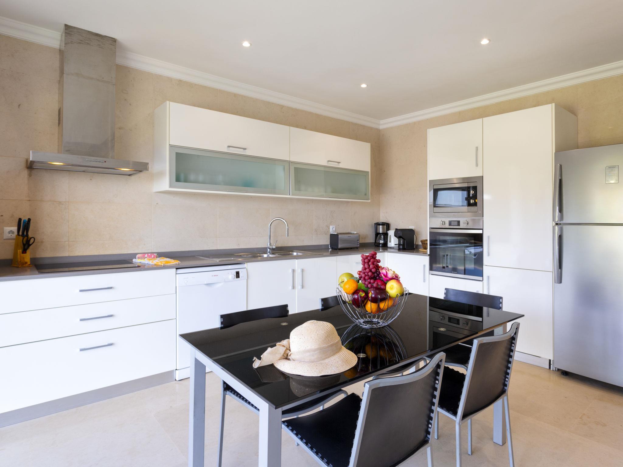 "Amendoeiras", 7-room villa 315 m2 on 2 levels. Very beautiful and cosy furnishings: living/dining room with TV, cable TV, international TV channels, flat screen, air conditioning, forced-air heating and electric shutters. Exit to the terrace, to the swimming pool. 1 room with 2 beds (90 cm, length 200 cm), shower/WC, double hand-basin, air conditioning, forced-air heating and electric shutters. Exit to the garden. 1 room with 1 french bed (160 cm, length 180 cm), shower/WC, air conditioning, forced-air heating and electric shutters. Exit to the garden. 1 room with 2 beds (90 cm, length 180 cm), shower/WC, air conditioning, forced-air heating and electric shutters. Kitchen (dishwasher, 4 ceramic glass hob hotplates, toaster, kettle, microwave, freezer, electric coffee machine). Exit to the garden, to the swimming pool. Sep. WC. On the lower ground floor: 1 room with 1 french bed (200 cm, length 200 cm), shower/bidet/WC, air conditioning, forced-air heating and electric shutters. Sep. WC. Upper floor: 1 room with 1 french bed (160 cm, length 200 cm), shower/bidet/WC, double hand-basin, air conditioning, forced-air heating and electric shutters. Exit to the terrace. 1 room with 1 french bed (200 cm, length 200 cm), bath/shower/bidet/WC, air conditioning, forced-air heating and electric shutters. Porch. Terrace furniture, barbecue, deck chairs (12). Panoramic view of the resort and the port. Facilities: washing machine, iron, children's high chair, baby cot for up to 2 year olds (extra), hair dryer. Internet (WiFi, free). Parking at the house. Suitable for families. 126376/AL