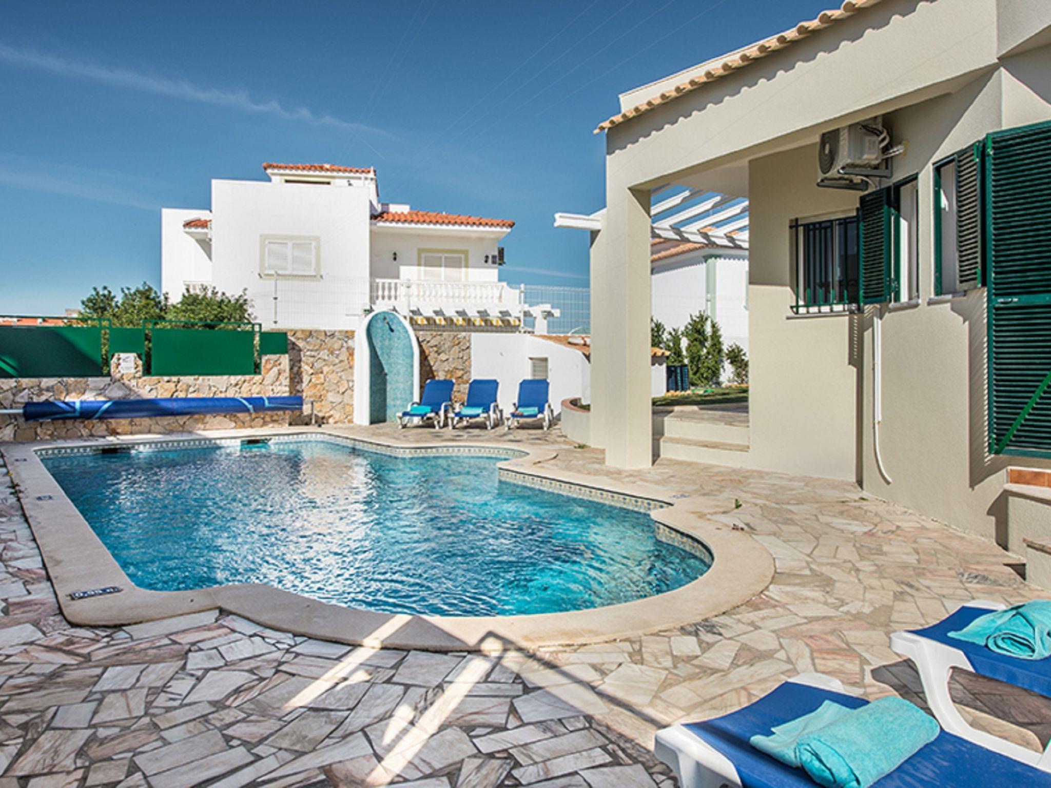 Cosy, comfortable villa "Monteiro". In the district Albufeira, residential area (villas), 700 m from the sea. Private: swimming pool angular (4 x 8 m, depth 95 - 220 cm, seasonal availability: 01.Jan. - 31.Dec.). Outdoor shower, table tennis. In the house: WiFi, billiard table, table football, air conditioning, washing machine. Parking at the house. Shop 1.7 km, grocery 1.7 km, supermarket 1.7 km, shopping centre 1.7 km, restaurant 500 m, bar 400 m, bakery 1.7 km, café 850 m, bus stop 300 m, sandy beach "Praia dos Alemães" 700 m. Marina 6 km, golf course (18 hole) 2.6 km, surf school 8.4 km, tennis 4.1 km, riding stable 15.2 km. Nearby attractions: Zoomarine 12 km, Aqualand 19 km, Krazy World 16 km, Sand City 27 km, Algarve Shopping 9 km, Museu Municipal de Arqueologia 5 km. Please note: car recommended. Suitable for families. Loading and unloading of baggage is possible at the holiday house. Young groups under 25 y.o. will be charged an extra deposit per person on spot. The pool heating service (20ºC-22ºC) must be informed to the KH one week before of your arrival paid on spot. After 7 nights extra 50€ per day for pool heating.