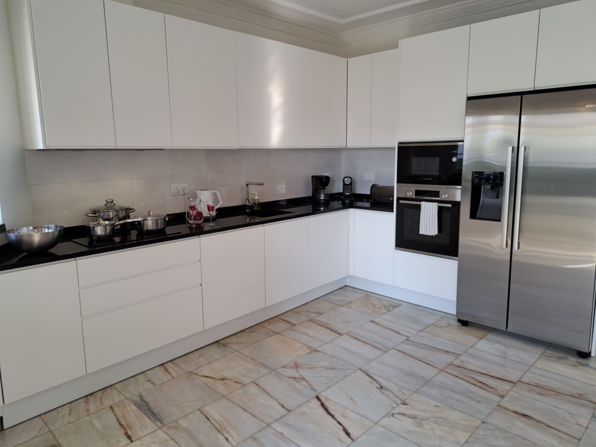 "Monteiro", 5-room villa 156 m2 on 2 levels. Practical and cosy furnishings: living room with 1 sofabed (140 cm, length 190 cm), TV, international TV channels, air conditioning and forced-air heating. Exit to the terrace, to the swimming pool. 1 room with 2 beds (90 cm, length 200 cm), shower/WC and air conditioning. 1 room with 2 beds (90 cm, length 200 cm), shower/WC, air conditioning and forced-air heating. Open kitchen (oven, dishwasher, 4 ceramic glass hob hotplates, toaster, kettle, microwave, freezer, electric coffee machine) with dining table. Shower/WC. Upper floor: 1 room with 2 beds (90 cm, length 200 cm), bath/shower/WC, air conditioning and forced-air heating. 1 room with 1 french bed (160 cm, length 200 cm), shower/WC, air conditioning and forced-air heating. Balcony furniture, barbecue, deck chairs (8), sitting area. View of the sea and the swimming pool. Facilities: washing machine, iron, children's high chair, baby cot for up to 2 year olds (extra), hair dryer. Internet (WiFi, free). Parking at the house. Suitable for families. 4275/AL