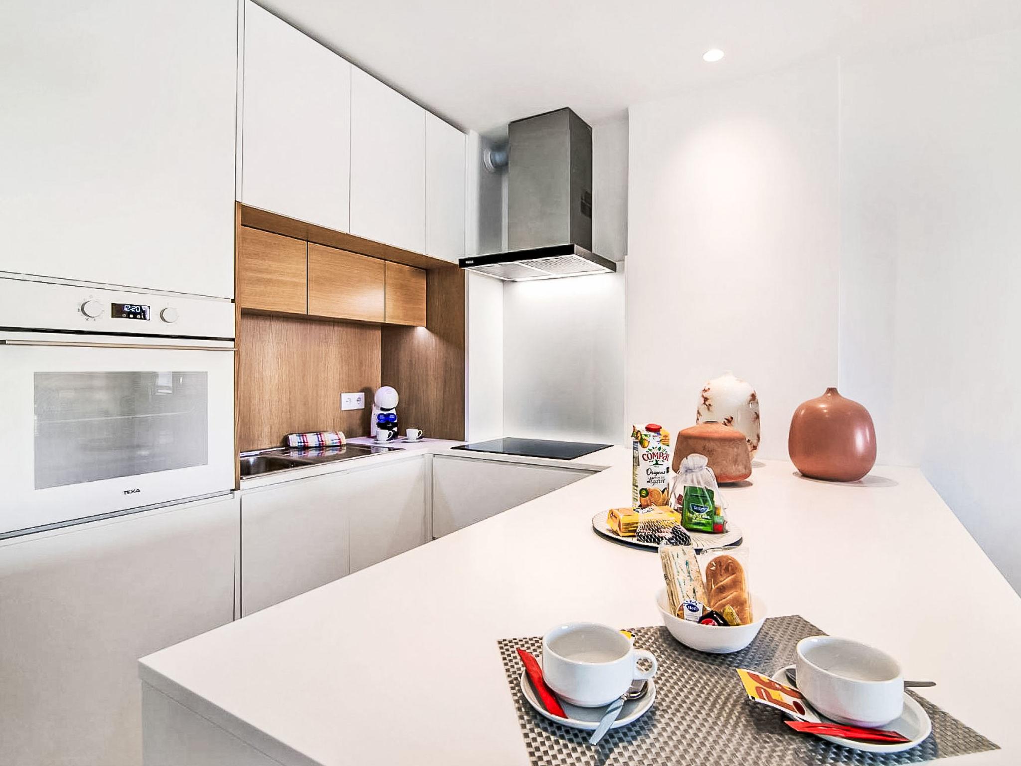 "Albufeira Prestige - Sunny Way", 2-room apartment 55 m2 on 1st floor. Bright, cosy furnishings: living/dining room with 1 double sofabed, cable TV, flat screen, air conditioning and forced-air heating. Exit to the balcony. 1 room with 1 french bed (1 x 160 cm, length 200 cm), air conditioning and forced-air heating. Open kitchen (oven, dishwasher, 4 ceramic glass hob hotplates, toaster, kettle, freezer, electric coffee machine, Capsules for coffee machine (DolceGusto) extra). Shower/bidet/WC. Small balcony. Balcony furniture. View of the swimming pool. Facilities: washing machine, iron, hair dryer. Internet (WiFi, free). Suitable for families. 122678/AL