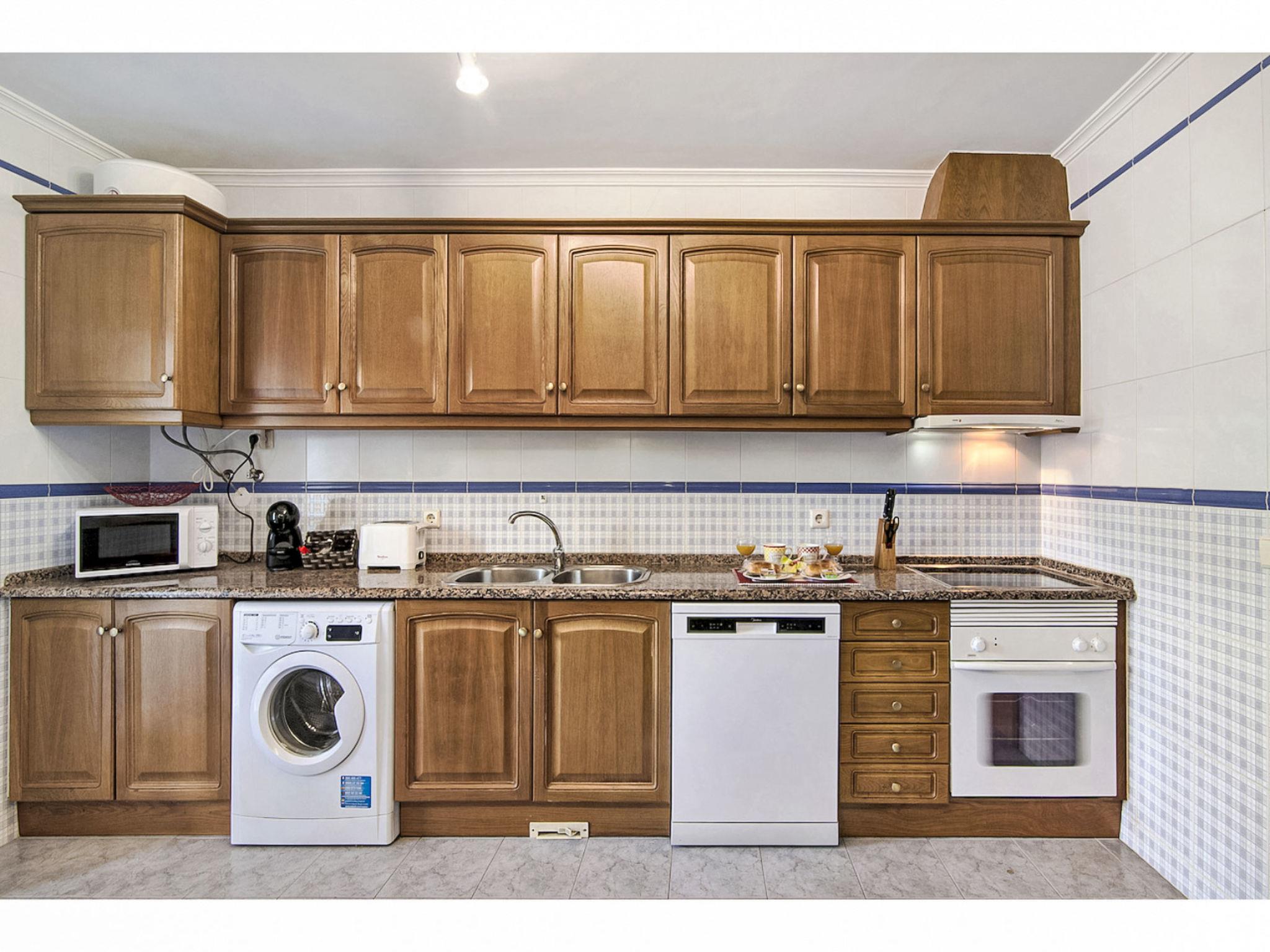 "Manelito House - Sunny Way", 3-room apartment 64 m2, on the ground floor. Simple furnishings: living/dining room with cable TV. Exit to the balcony. 1 room with 1 french bed (1 x 180 cm, length 200 cm), air conditioning and forced-air heating. 1 room with 2 beds (90 cm, length 190 cm), air conditioning and forced-air heating. Open kitchen (oven, dishwasher, 4 ceramic glass hob hotplates, toaster, kettle, microwave, electric coffee machine, Capsules for coffee machine (DolceGusto) extra). Shower/bidet/WC. Small balcony. Balcony furniture. View of the resort. Facilities: washing machine, iron, hair dryer. Internet (WiFi, free). Suitable for families. 86163/AL